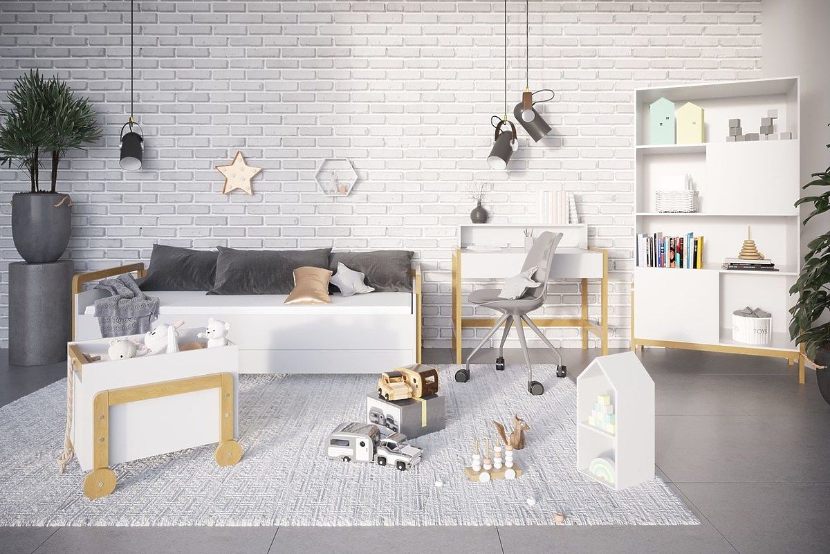 Krásny biely policový regál Viktor v škandinávskom štýle dodá šmrnc ako dievčenskej, tak i chlapčenskej izbe. Toto originálne riešenie knižnice ponúka mnoho kombinácií usporiadania.