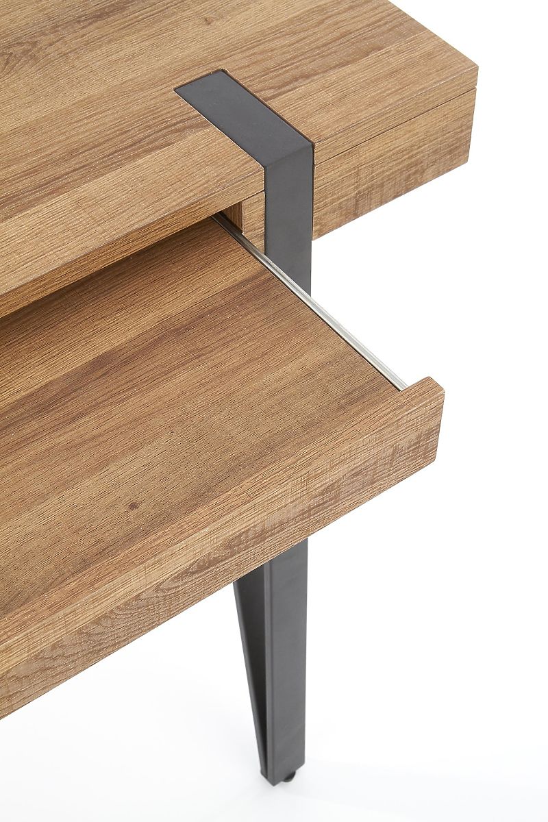 Pracovná doska je vyrobená z laminovanej MDF dosky vo farbe medového orecha. Konštrukcia je vyrobená z práškovo lakovanej ocele v čiernej farbe.