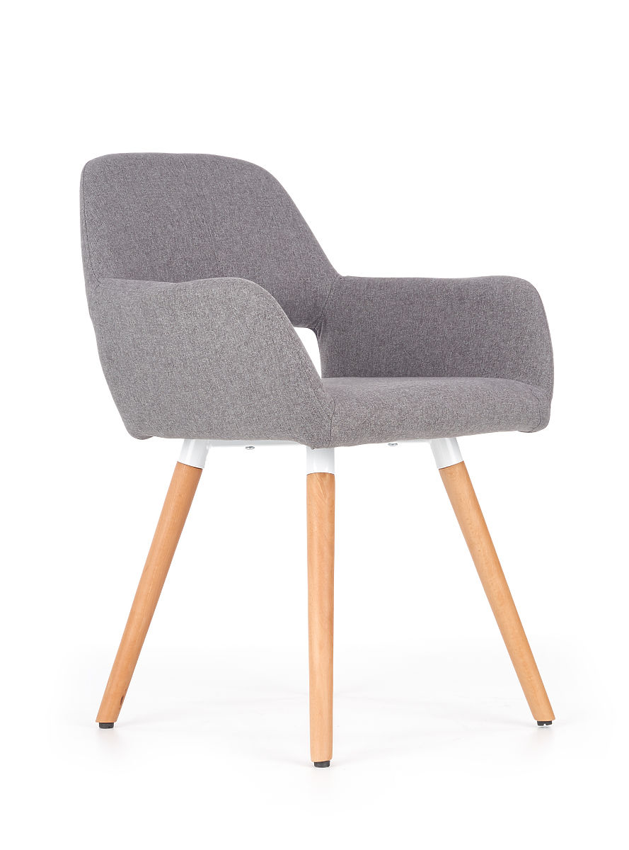 Polokreslo K283 so sivým čalúnením a drevenými nohami. .. viac