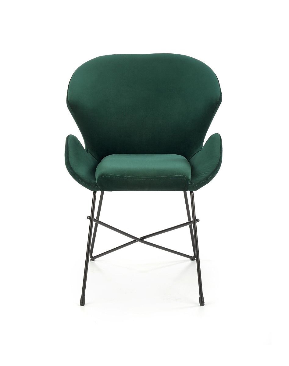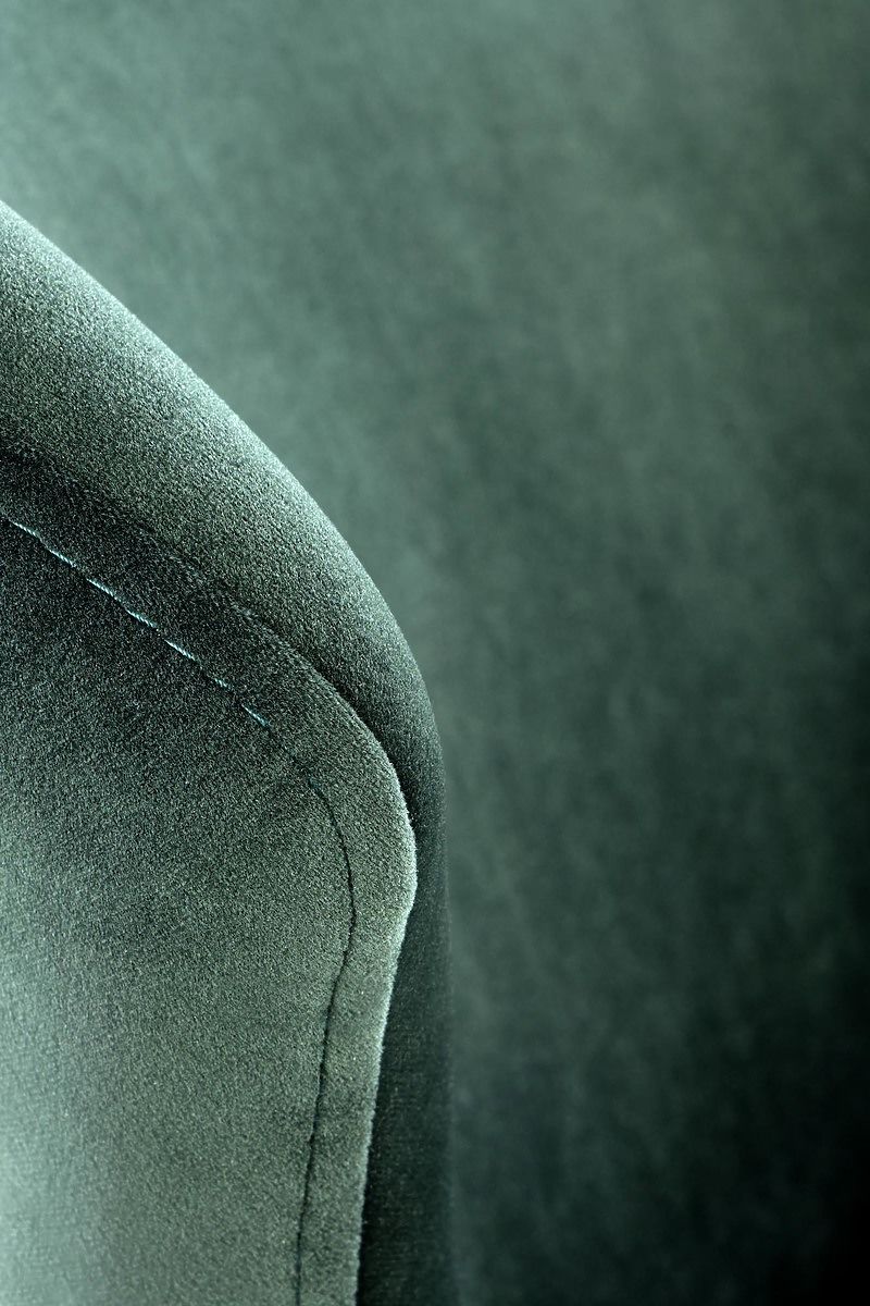 Stolička je čalúnená zamatovou látkou tmavozelenej farby. Konštrukcia je vyrobená z práškovo lakovanej ocele čiernej farby.