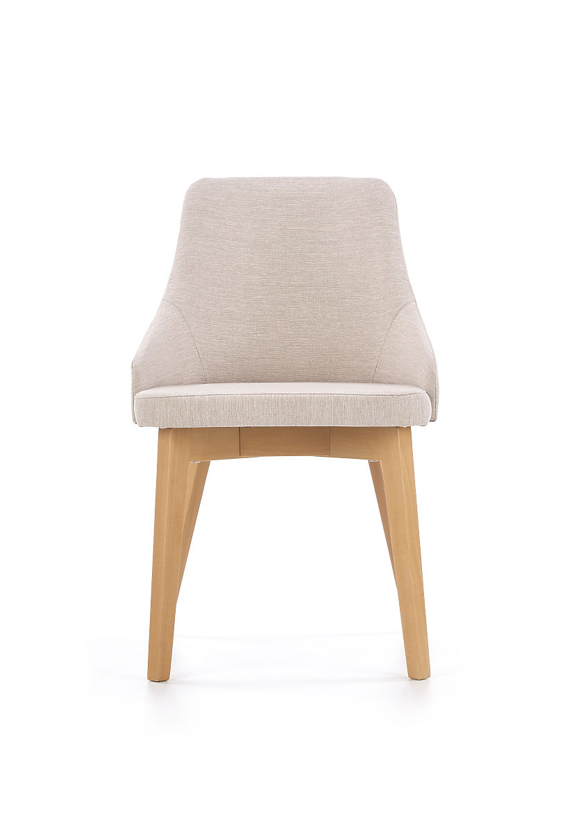 Konštrukcia stoličky je vyrobená z masívneho bukového dreva v odtieni medový dub. Sedák aj operadlo sú čalúnené príjemnou látkou krémovej farby.