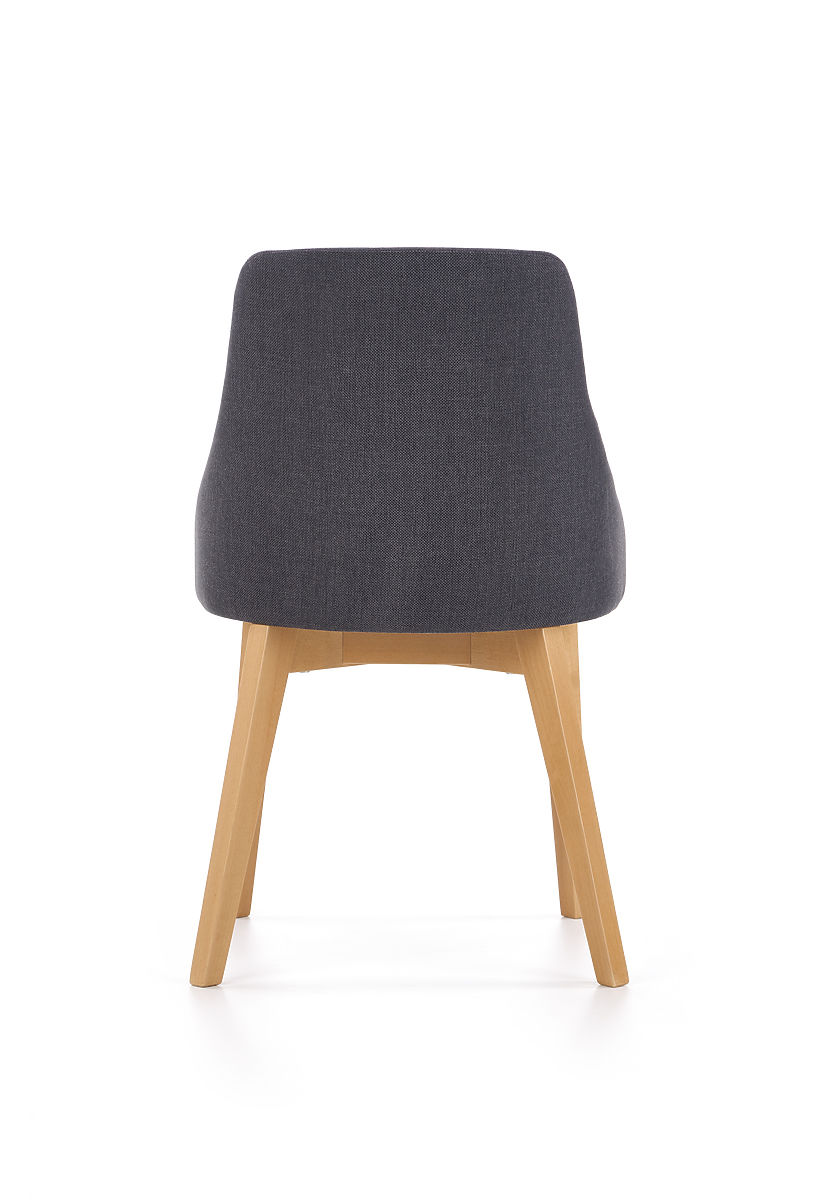 Konštrukcia stoličky je vyrobená z masívneho bukového dreva v odtieni medový dub. Sedák aj operadlo sú čalúnené príjemnou látkou tmavošedej farby.