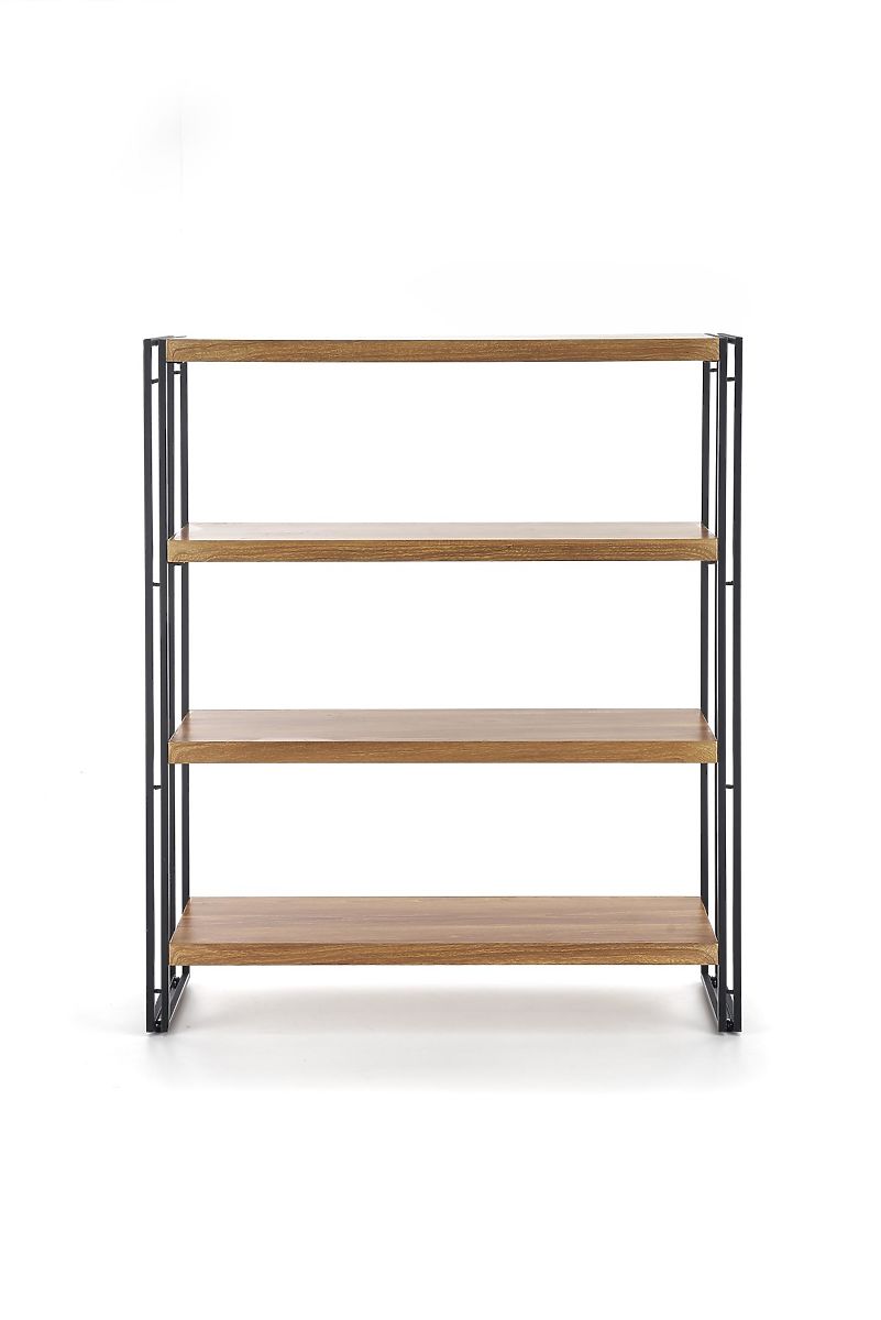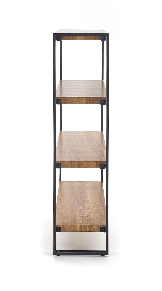 Regál je vyrobený z laminovanej MDF dosky v dekore zlatý dub, čo zaisťuje elegantný vzhľad. Jeho čierna stabilná konštrukcia z práškovo lakovanej ocele dodáva regálu moderný a štýlový dizajn.