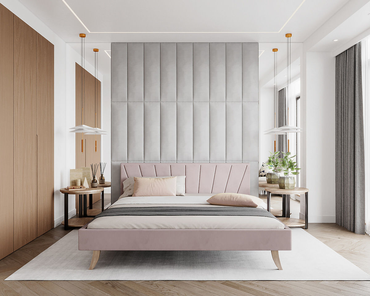Moderný vzhľad s ozdobným prešívaním na opierke hlavy robí z tejto postele elegantný a atraktívny kus nábytku, ktorý môže zapadnúť do rôznych štýlov spální. Velúrový materiál TRINITY je skvelým výberom pre čalúnenie postelí v spálňach. Jeho jemná a nadýchaná textúra, spolu s vysokou odolnosťou proti oderu a žmolkovaniu, zaisťuje, že posteľ vyzerá dobre a má dlhú životnosť. Odolnosť proti slnečnému žiareniu je ďalším výhodným prvkom, čo znamená, že materiál si udržuje svoju farbu celý rad rokov.