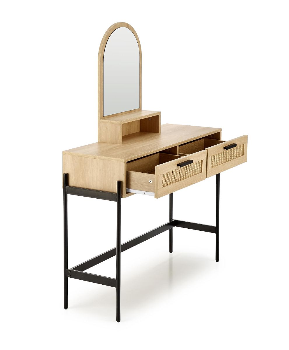 Stolík je vybavený dvoma uzatvárateľnými šuplíkmi a praktickým zrkadlom, ktoré vám umožnia pohodlne vykonávať vašu kozmetickú starostlivosť a líčenie. Tento ratanový stolík vytvorí dokonalý priestor pre vašu osobnú starostlivosť o krásu.