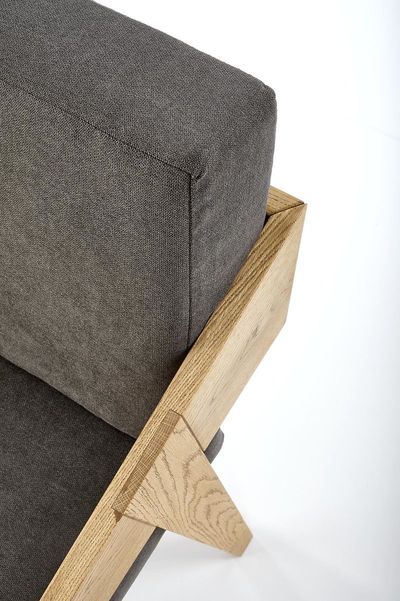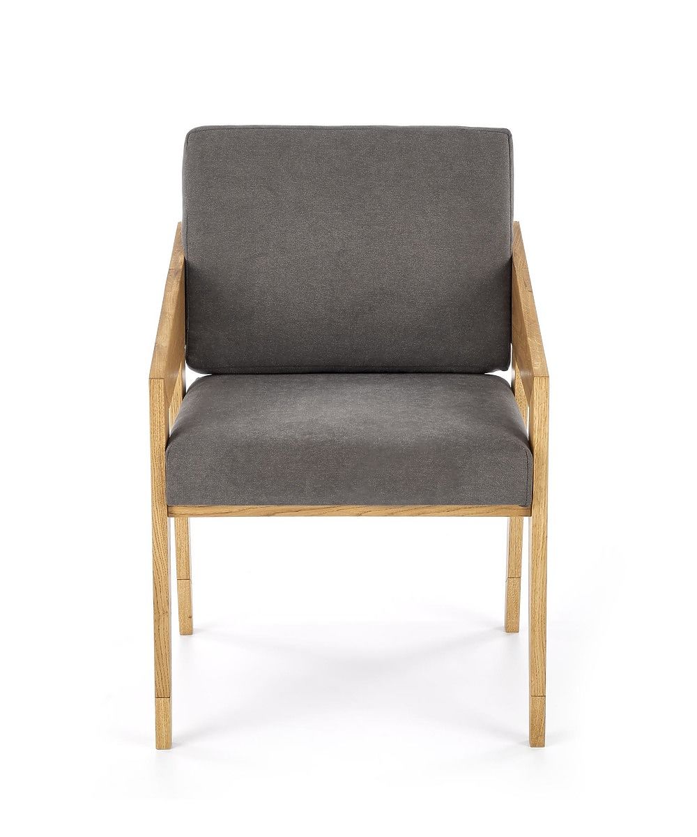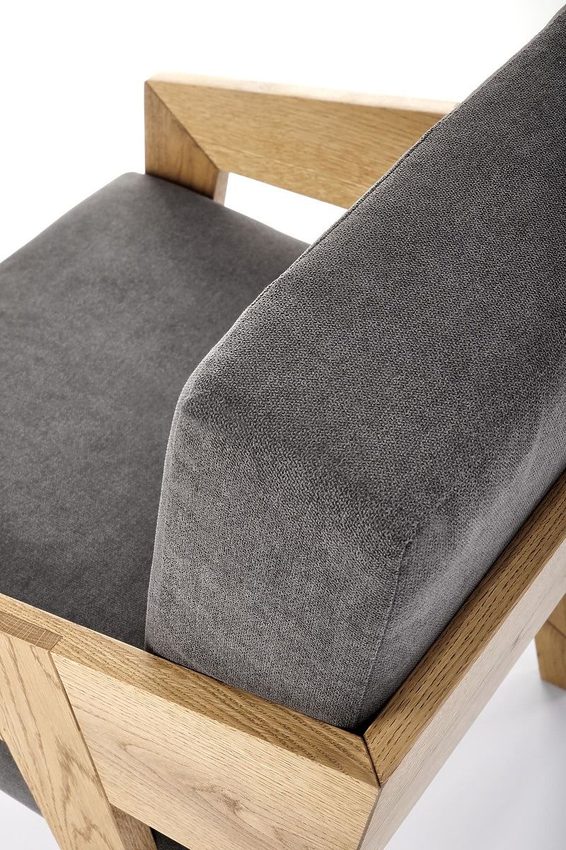 Vychutnajte si pohodlie a eleganciu s týmto kreslom z masívneho dubového dreva so šedým čalúnením. Táto kombinácia ponúka perfektné spojenie prírodného dreva a moderného designu pre vaše bývanie.