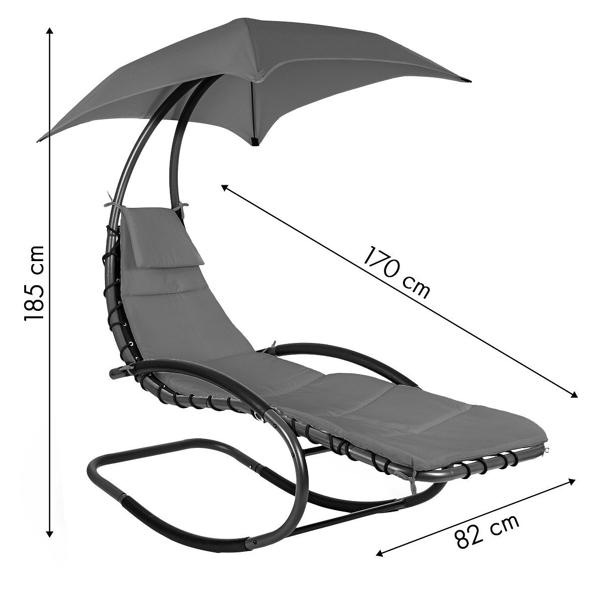 Veľká nastaviteľná strieška zabezpečí príjemný tieň počas horúcich dní a ľahké hojdanie nám spríjemní čas strávený vonku.