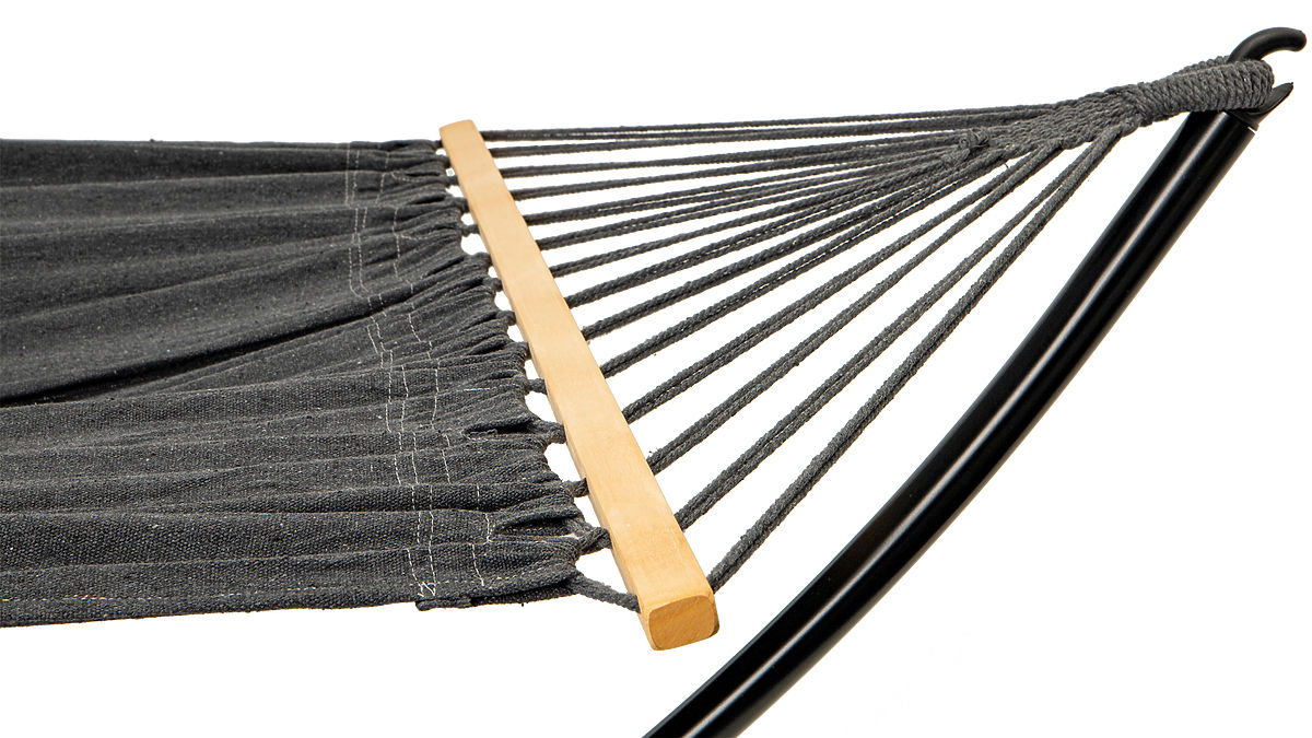 Hojdacia sieť je vyrobená z odolného materiálu, ktorý sa dokonale prispôsobí telu. Drevené tyče, cez ktoré sú prevlečené upevňovacie šnúry, zaisťujú, že plocha určená na ležanie je správne napnutá a nekrúti sa.