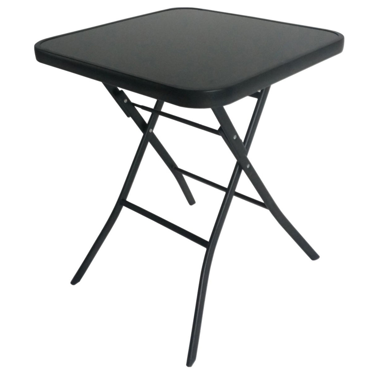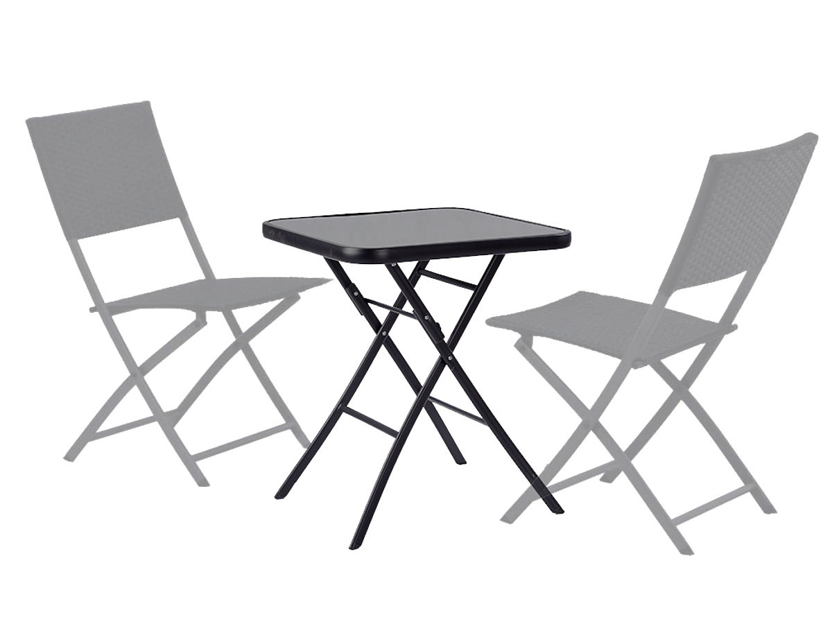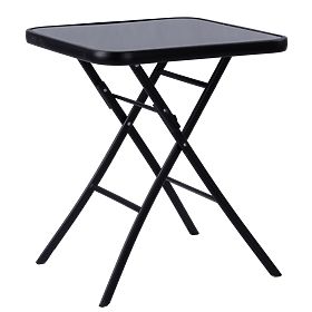 SKLADACÍ STÔL Ideálny do záhrady alebo na terasu Sklenená, čierna, tvrdená doska o rozmere 60x60 cm Stabilná konštrukcia s možnosťou zloženia Oceľové profily .. viac