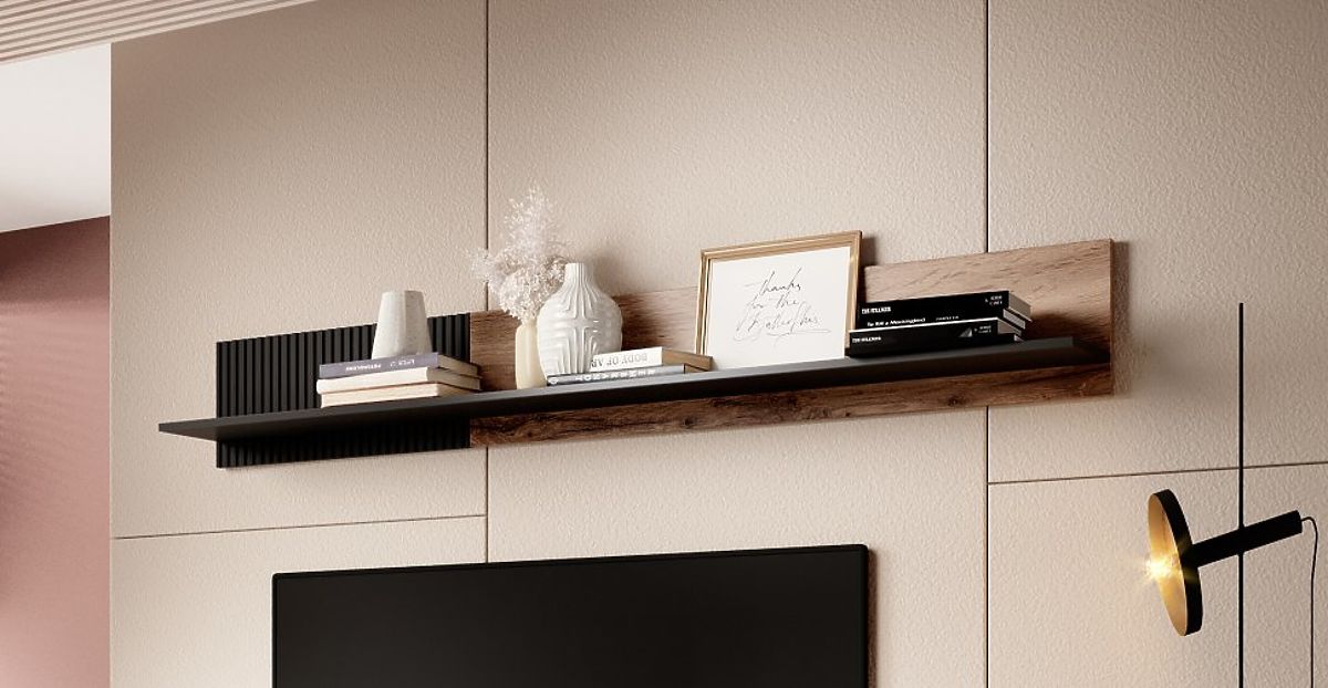 Štýlová nástenná polica, ktorá je ideálna na vystavenie vašich dekorácií, kníh alebo ďalších predmetov. Jej moderný dizajn a kvalitné materiály z nej robia praktický a elegantný doplnok každého interiéru.