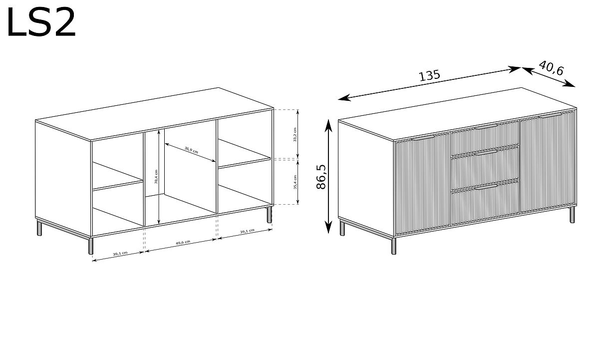 Komoda LS2 s kovovými nohami a tichými pántmi. .. viac