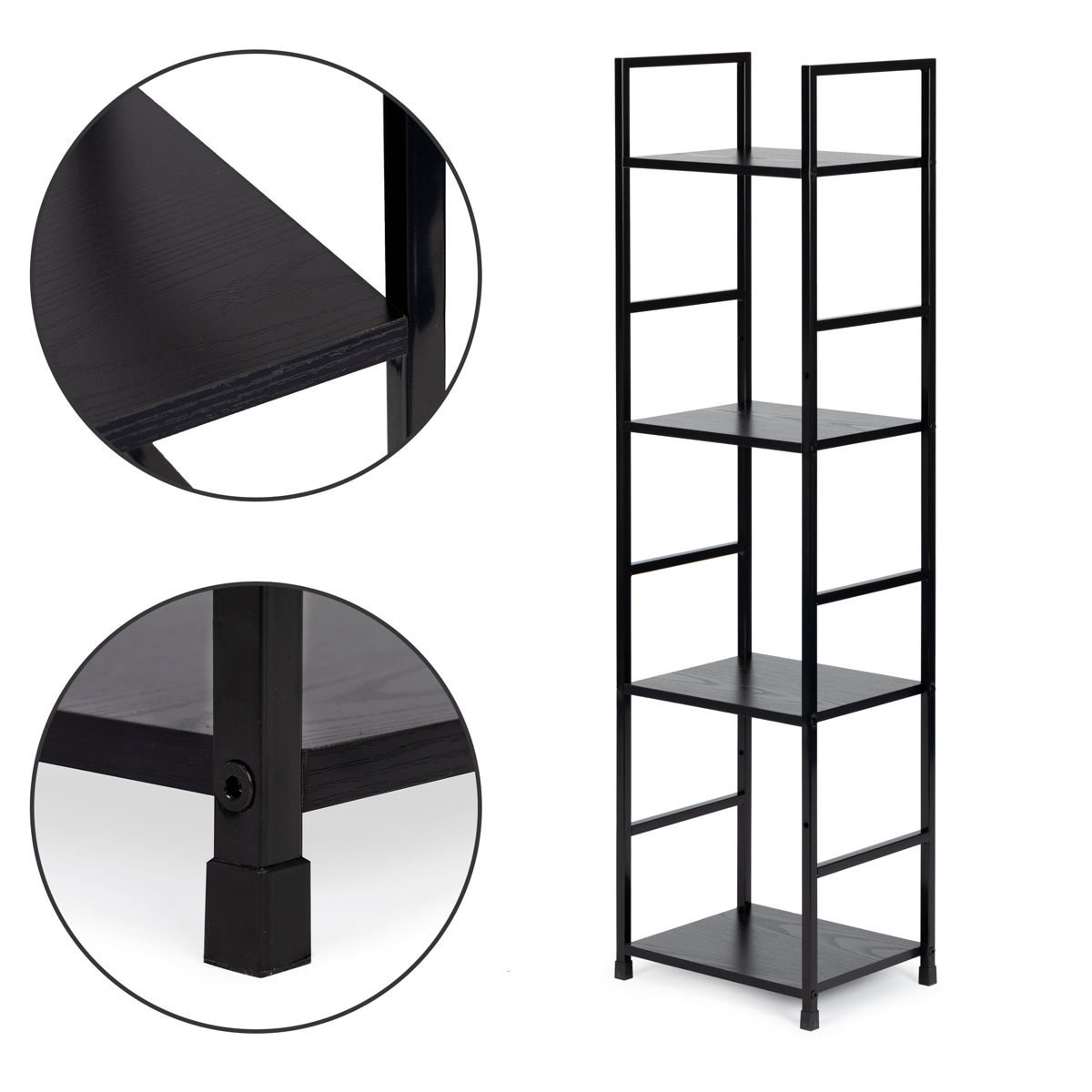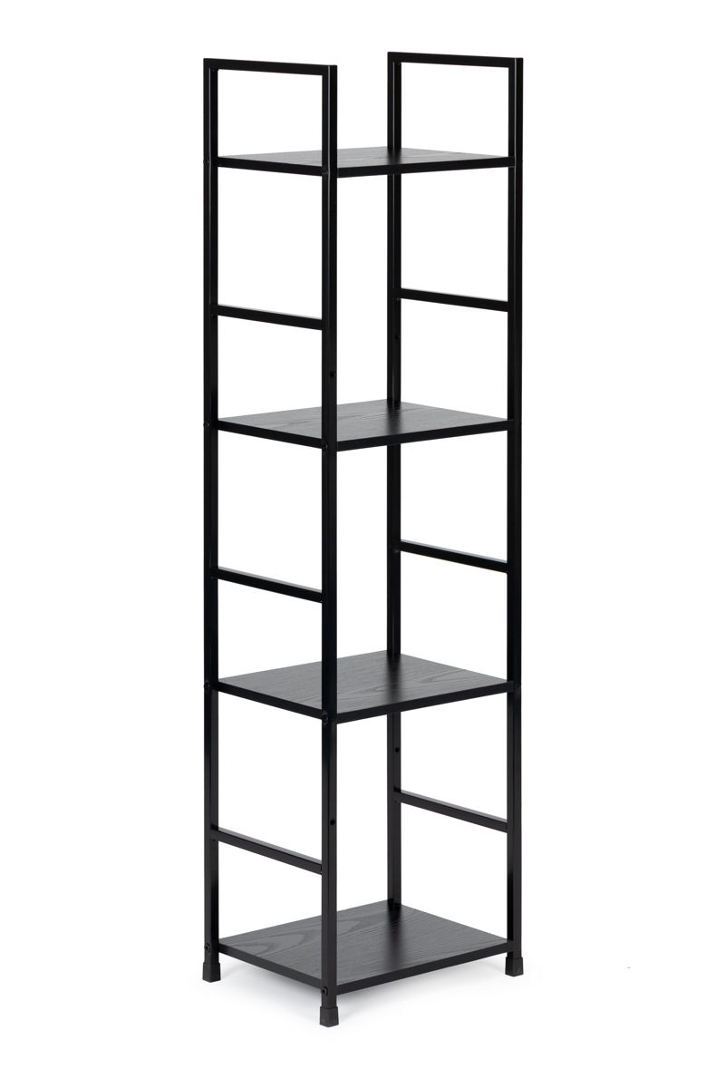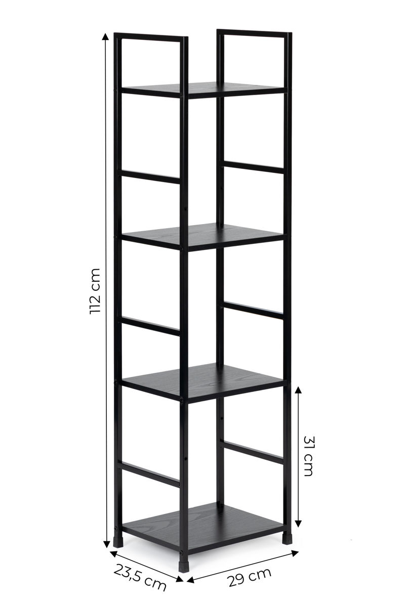 37405-0 Drevená moderná polica kovový rám LOFT 4 police čierna