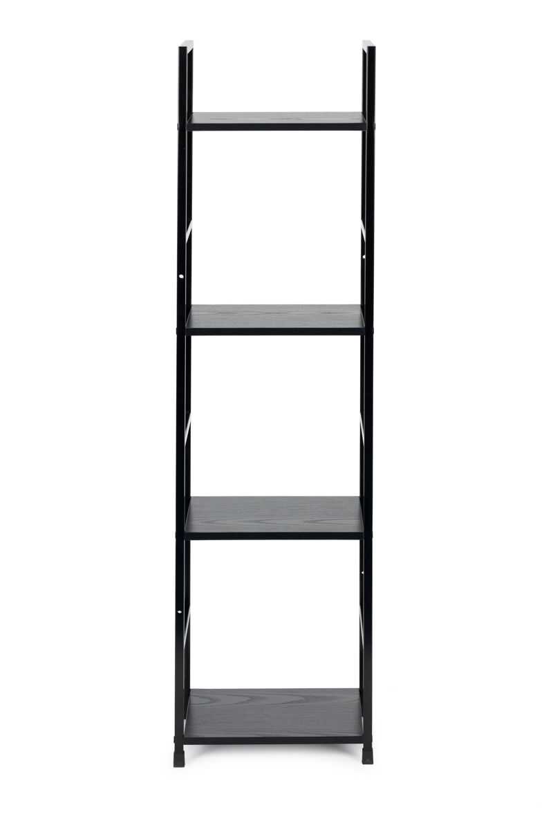 Drevená moderná polica kovový rám LOFT 4 police čierna