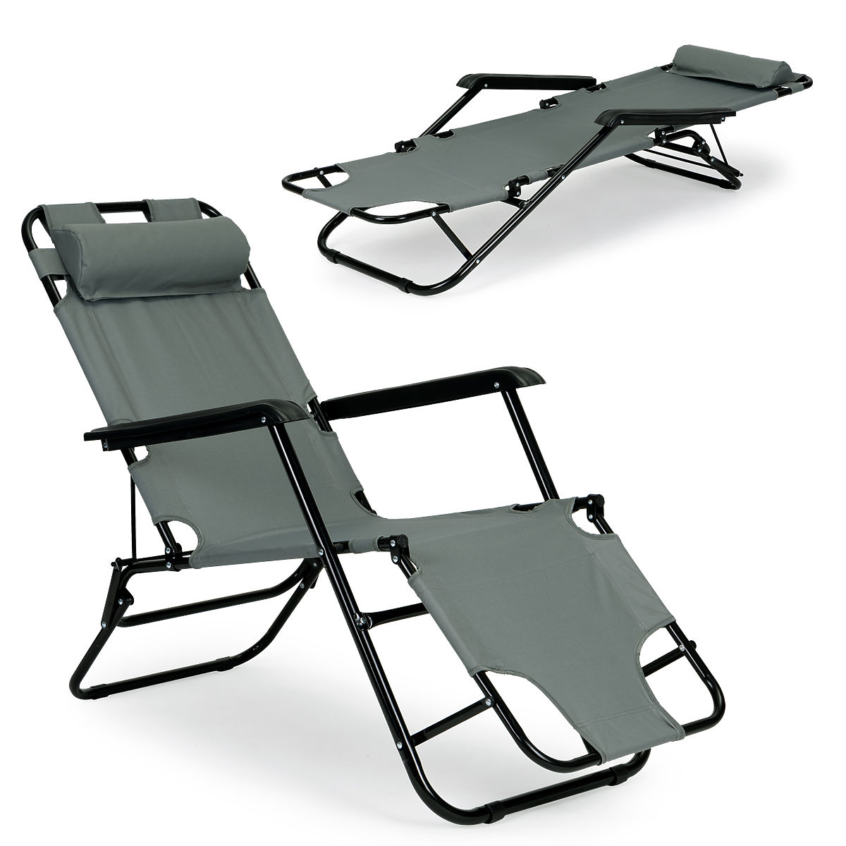 Lukahome.sk » Záhradný nábytok / Záhradné lehátka / Záhradné lehátko s opierkou hlavy skladacia konštrukcia sivá MultiGarden