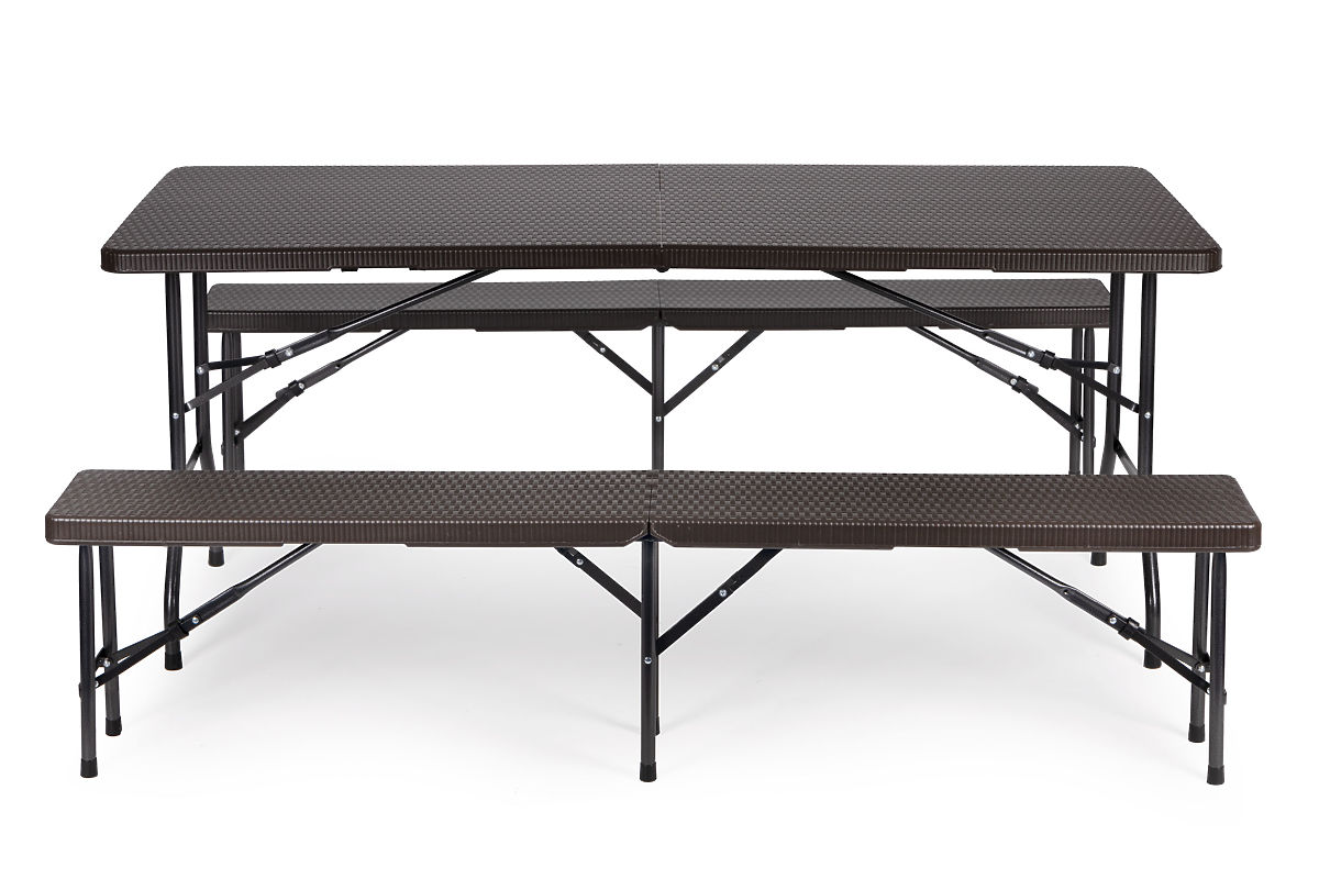 Sada poskytne miesto pre 8 osôb, výšky lavíc a stola sú navrhnuté tak, aby zabezpečovali pohodlie a komfortnú pozíciu počas vonkajších stretnutí. Možnosť zloženia nábytku do kufra vám ušetrí miesto pri skladovaní a uľahčí transport.