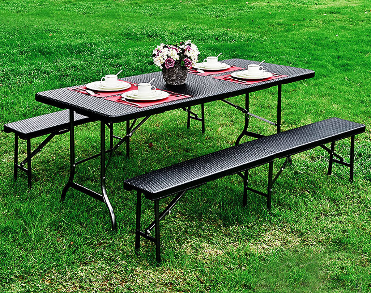 Lukafurniture.sk » Záhradné nábytok / Cateringová sada banketový stôl 180 cm 2 lavice ratan hnedý ModernHome