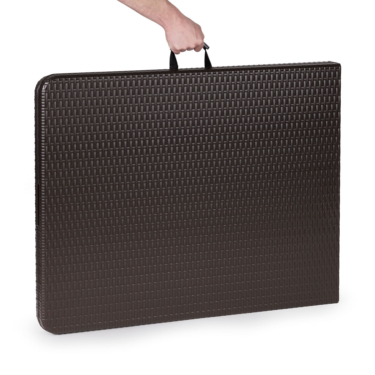 Skladací záhradný stôl s ratanovým vzorom a transportnou rukoväťou. .. viac