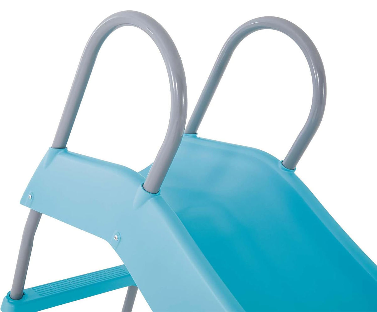 Zabezpečte svojmu dieťaťu nezabudnuteľné chvíle zábavy vďaka pevnej šmykľavke značky INTEX. Vyrobená z odolnej, práškovo lakovanej ocele, zaručuje stabilitu a odolnosť voči poveternostným vplyvom. Bezpečné, protišmykové stupne a špeciálne tvarovaný sklz z plastu zaisťujú pohodlie pri používaní. Vďaka dĺžke sklzu 183 cm a jeho vlnitej konštrukcii poskytuje produkt veľa zábavy a jeho rozmery ho robia ideálnym pre záhradu pri dome.