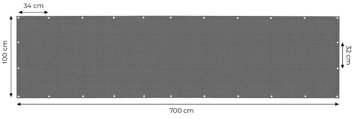 Lukafurniture.sk » Slnečníky a slnečné plachty / Balkónová clona s kovaním 100x700 cm tieniaca sieť + inštalačné prvky sivá MultiGarden