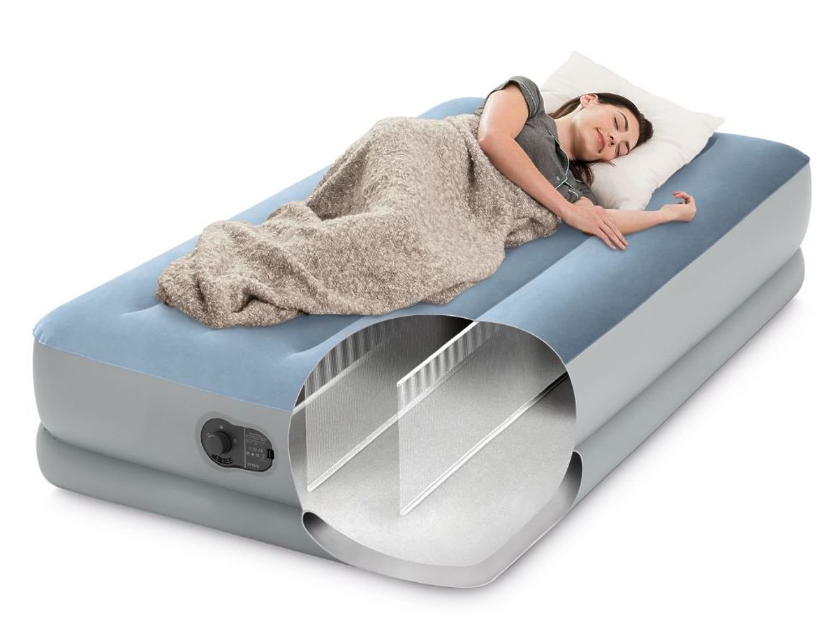 MODERNÁ TECHNOLÓGIA FIBER-TECHTechnológia Fiber-Tech je inovatívne riešenie vyvinuté firmou INTEX, ktoré výrazne zvyšuje kvalitu a trvanlivosť matraca. Namiesto tradičných vzduchových komôr je vnútorná konštrukcia založená na stovkách ultra-pevných polyesterových vlákien, ktoré tvoria jednotnú, stabilnú štruktúru. Čo je najdôležitejšie – tieto vlákna sa časom neroztiahnu, vďaka čomu matrac zachováva svoj tvar a vlastnosti aj po mnohých cykloch nafukovania a používania. Vďaka technológii Fiber-Tech užívateľ pocíti komfort porovnateľný s tradičnou posteľou, čo robí matrac ideálnym ako pre každodenný spánok, tak pre príležitostný odpočinok.