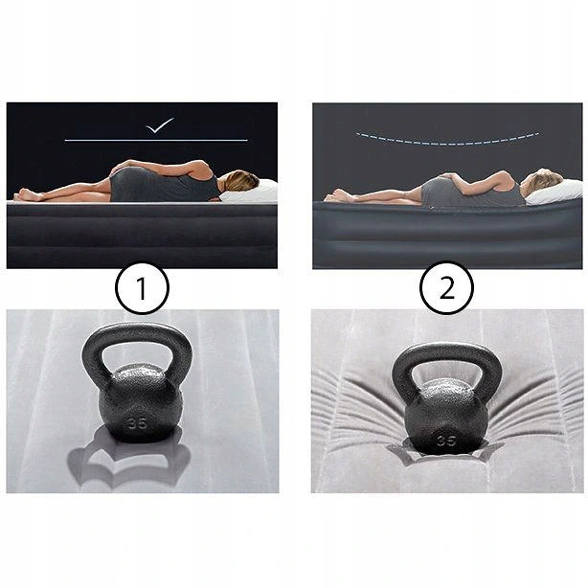 POHODLNÉ NAFUKOVANIE BEZ NÁMAHYVstavaná elektrická pumpa zabezpečuje rýchle nafúknutie bez potreby použitia sily alebo ďalších príslušenstiev. Napájaná je z populárnych zdrojov 5V/2A, ako sú powerbanky, nabíjačky na smartfóny, USB porty alebo nabíjačky do auta. Vďaka tomu môžete matrac nafúknuť prakticky kdekoľvek – v stane, na kempovaní alebo doma.