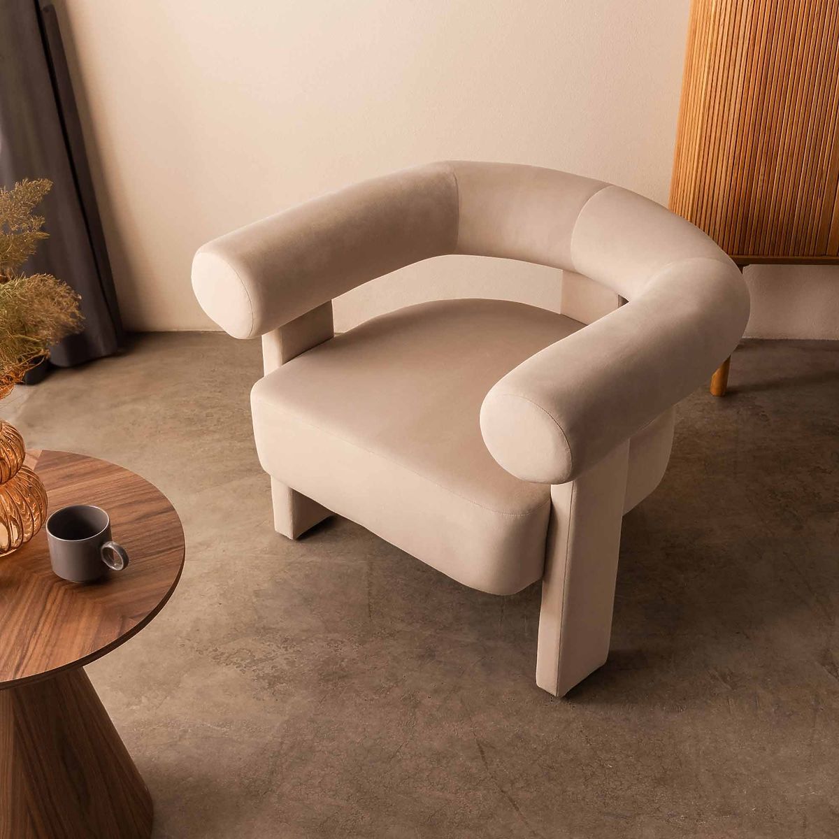 Lukafurniture.sk » Do domu / Obývacia izba / Kreslá / Relaxačné kreslo Hella svetlo béžové, zamatové, zaoblené