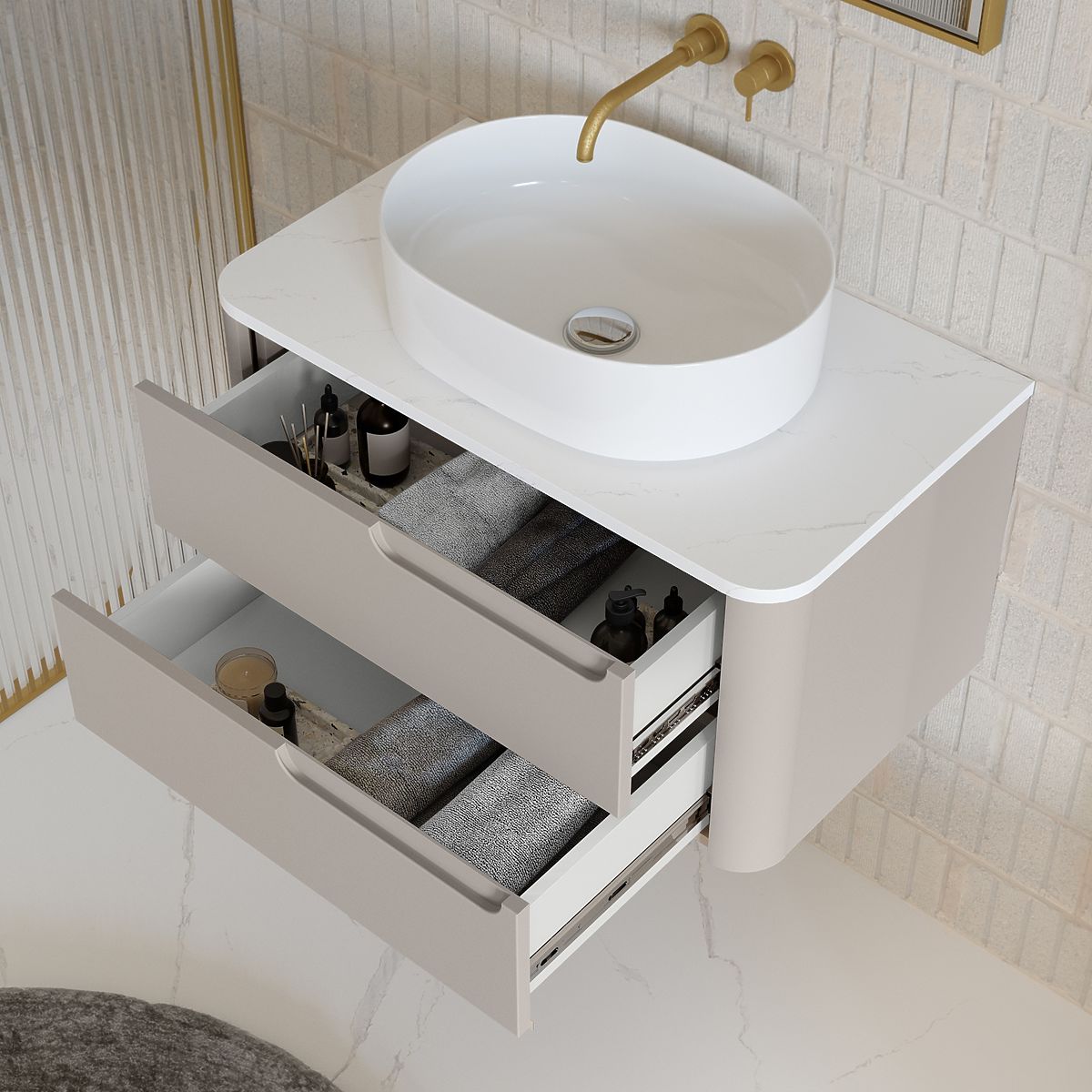 Lukafurniture.sk » Do domu / Kúpeľňa / Kúpeľňové skrinky / Skrinka pod umývadlo na dosku Zora, zaoblená, biela/hnedosivá