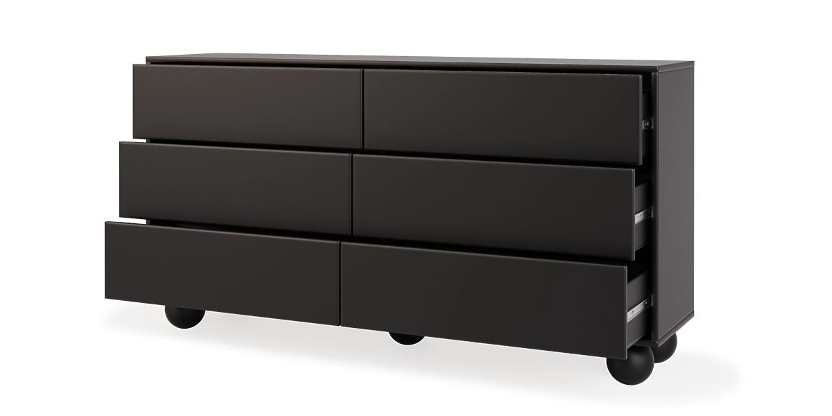 Elegantná čierna komoda Aldo s guľatými nožičkami a šiestimi zásuvkami. .. viac