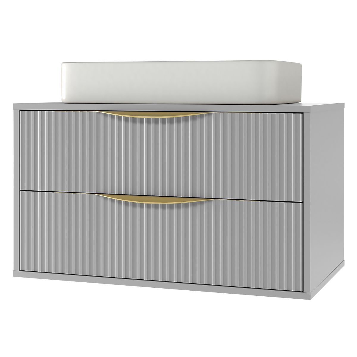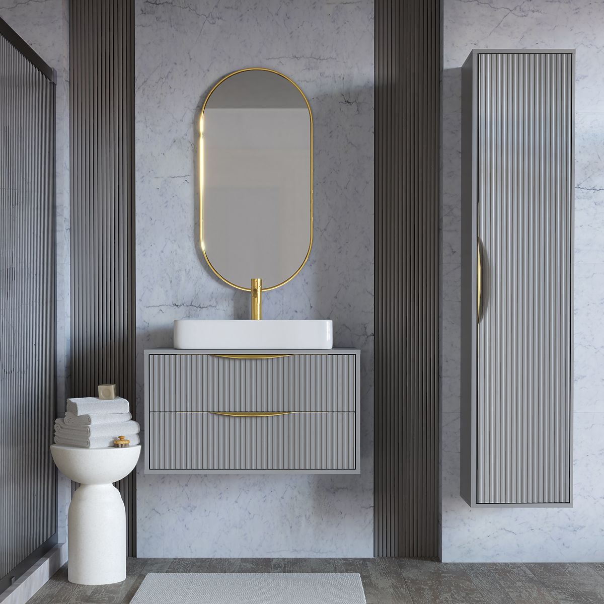 Lukafurniture.sk » Do domu / Kúpeľňa / Kúpeľňové skrinky / Skrinka pod umývadlo na dosku Avila 2.0, 80 cm, ryhovaná, zlaté úchyty, sivá