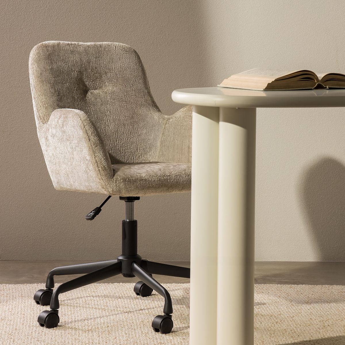 Otočná stolička Miguel spája moderný dizajn s pohodlím a ponúka mäkké sedadlo a operadlo potiahnuté príjemnou látkou na dotyk. Jej jednoduchý tvar zabezpečuje, že sa hodí do každého interiéru, prinášajúc eleganciu a pohodlie. Ergonomické podrúčky poskytujú komfort a základňa na kolieskach umožňuje jednoduchý pohyb. Stolička je ideálna ako do kancelárie, tak do domácej pracovne, spájajúc funkčnosť s estetikou. Miguel je ideálnym riešením pre tých, ktorí si cenia pohodlie a štýl. Vďaka nej sa každá chvíľa strávená pri stole stáva potešením. Je to praktický a elegantný doplnok do vášho interiéru.