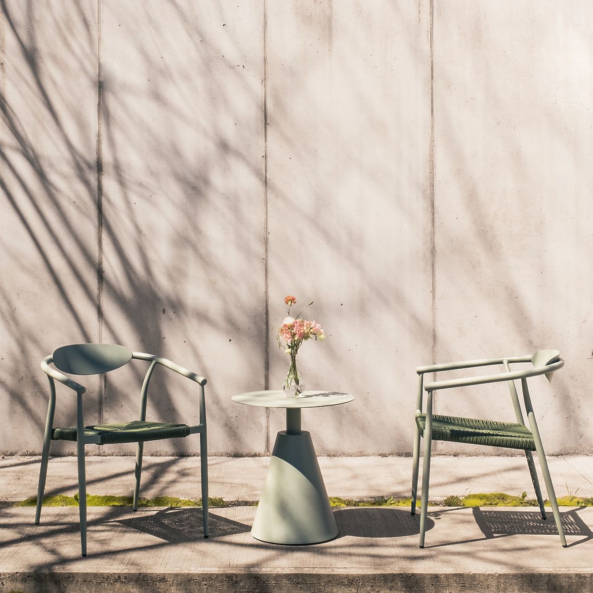 Stohovateľná záhradná stolička z hliníka a technoratanu v šalviovej farbe. .. viac