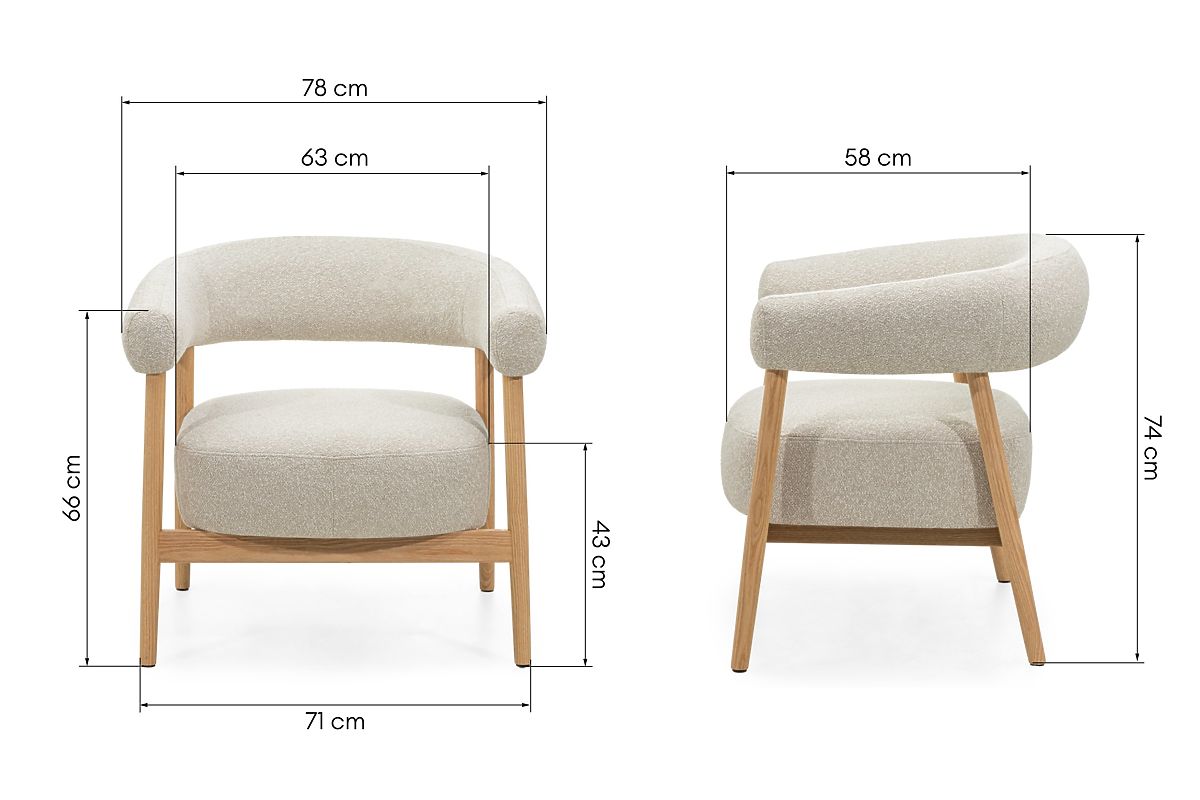 Lukafurniture.sk » Do domu / Obývacia izba / Kreslá / Čalúnená stolička/kreslo Montepulciano, svetlo béžová/dubové drevo, zaoblené
