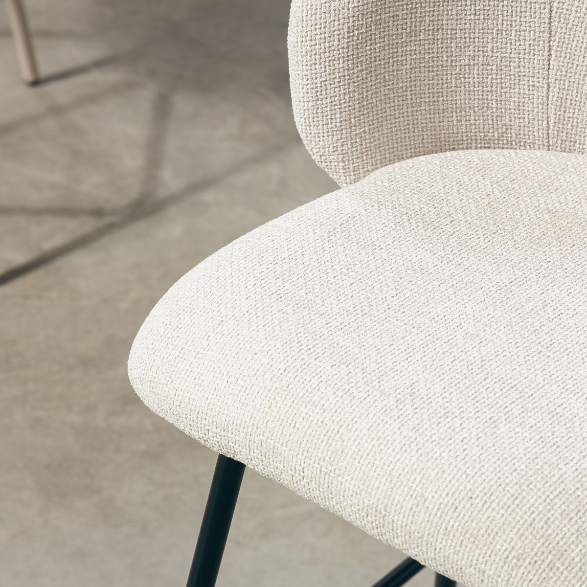 Stolička s béžovým čalúnením a čiernymi nohami pre elegantný interiér. .. viac