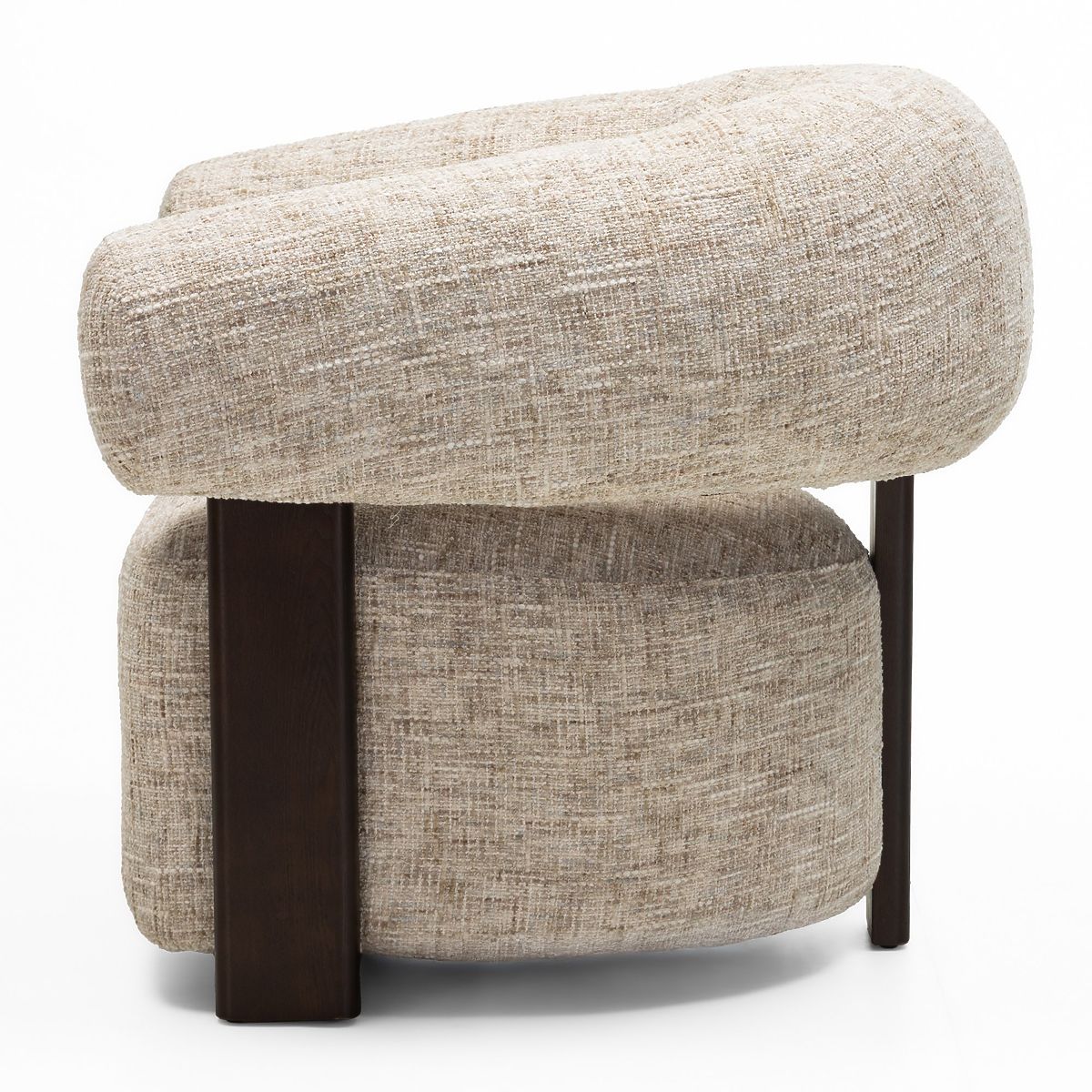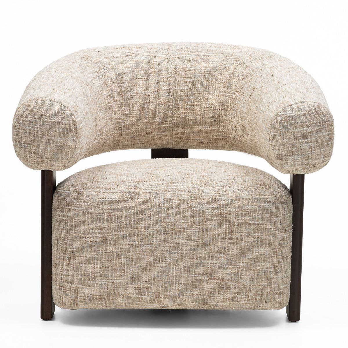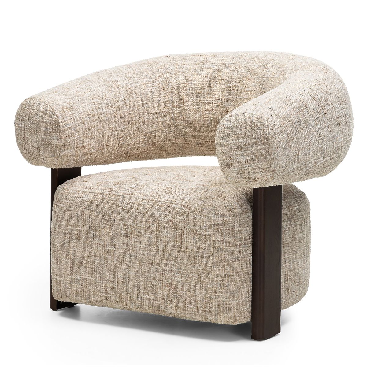 Relaxačné kreslo s béžovošedým čalúnením a orechovými nohami. .. viac