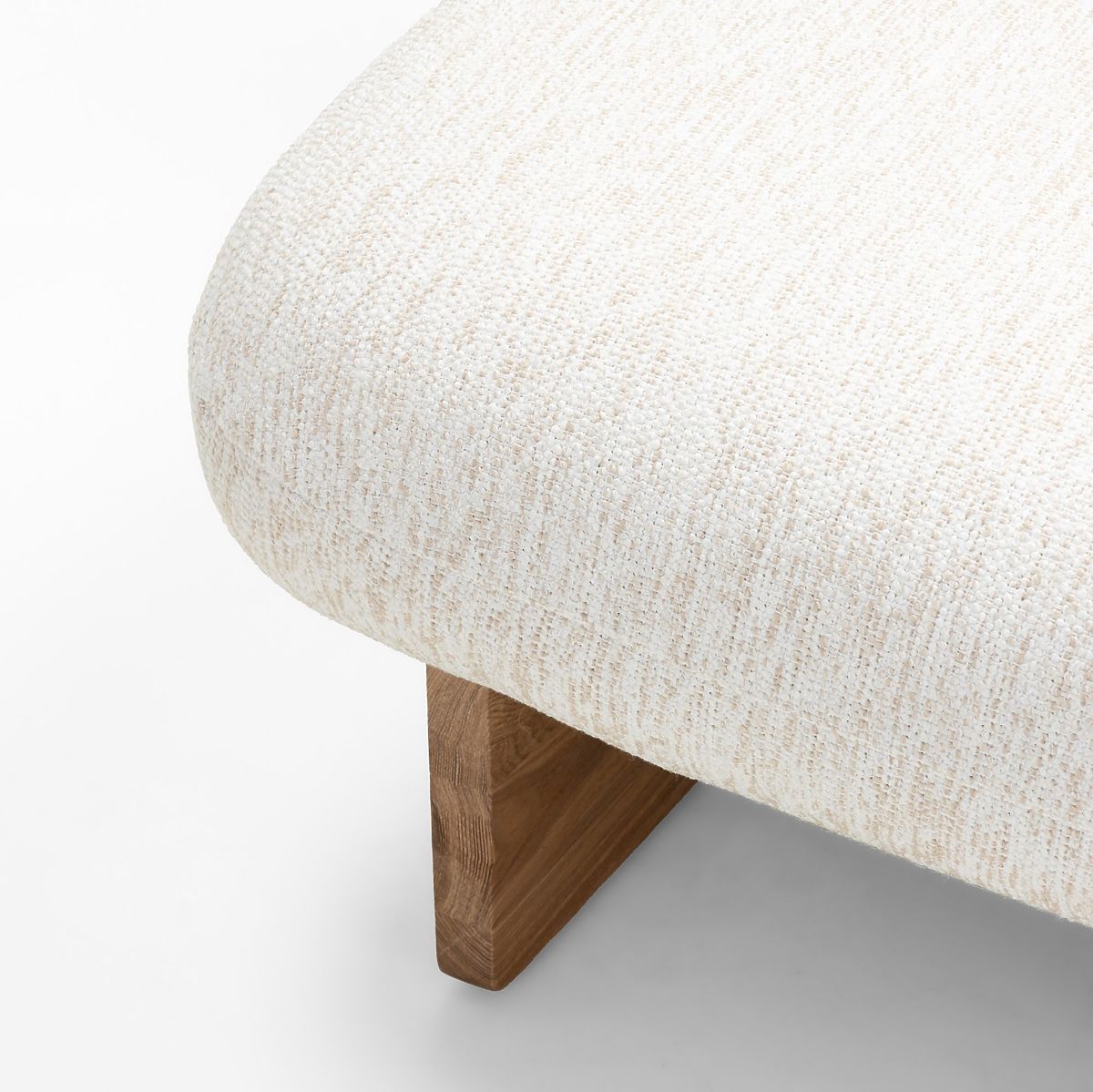 Relaxačné kreslo Silia s oblými tvarmi a béžovým čalúnením. .. viac