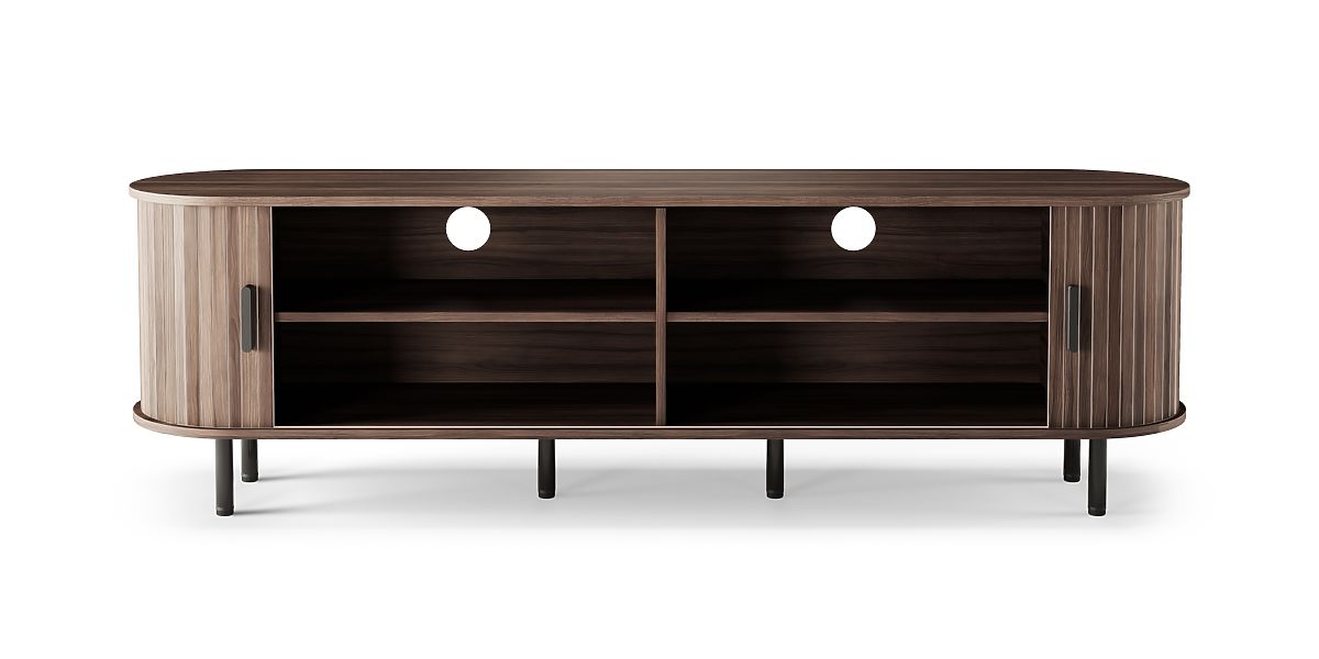 Zaoblená TV skrinka Gliss s lamelami v tmavom orechu. .. viac