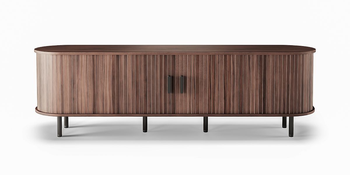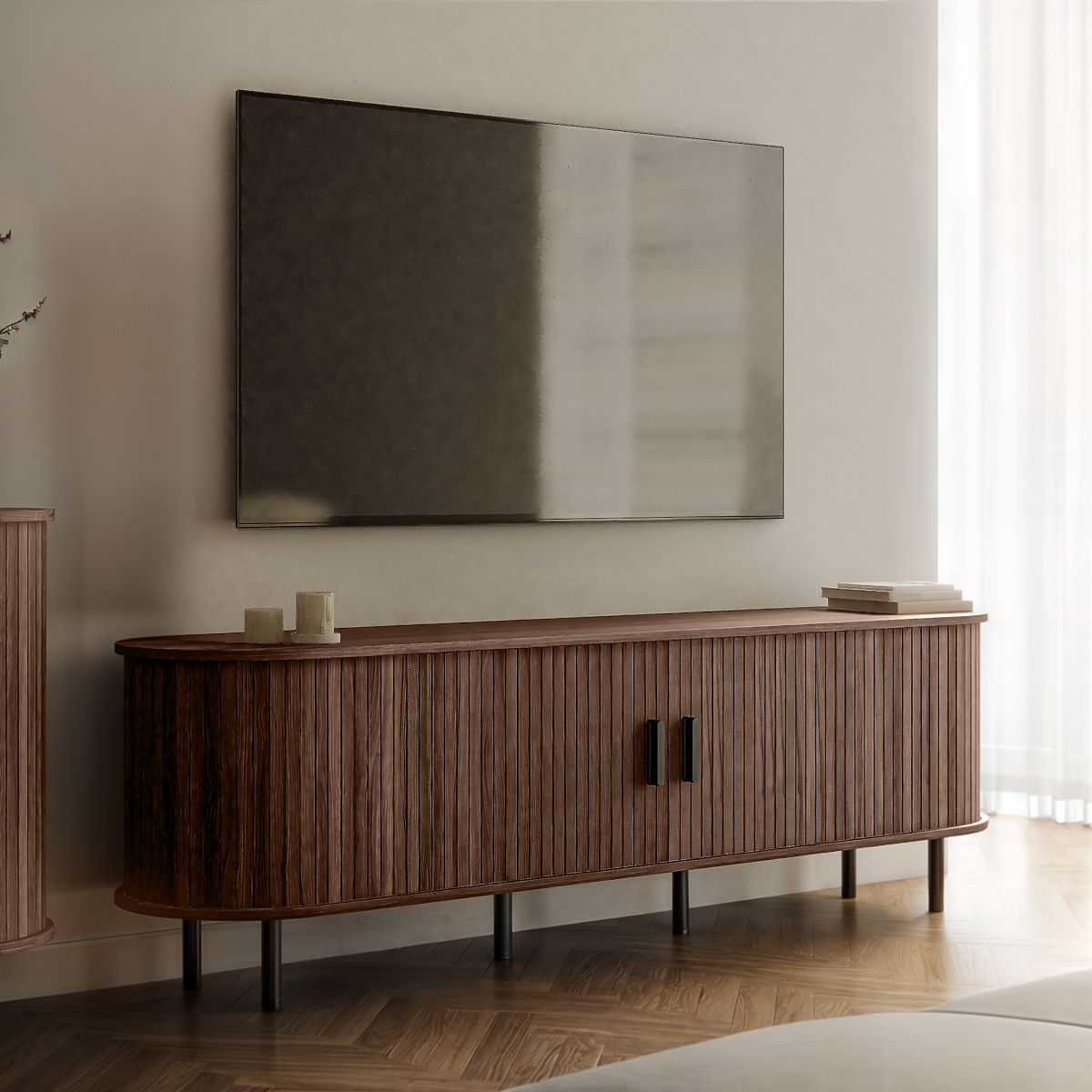 Lukafurniture.sk » Do domu / Obývacia izba / TV stolíky a komody / Uzavretá TV skrinka Gliss, zaoblená, lamely, tmavý orech