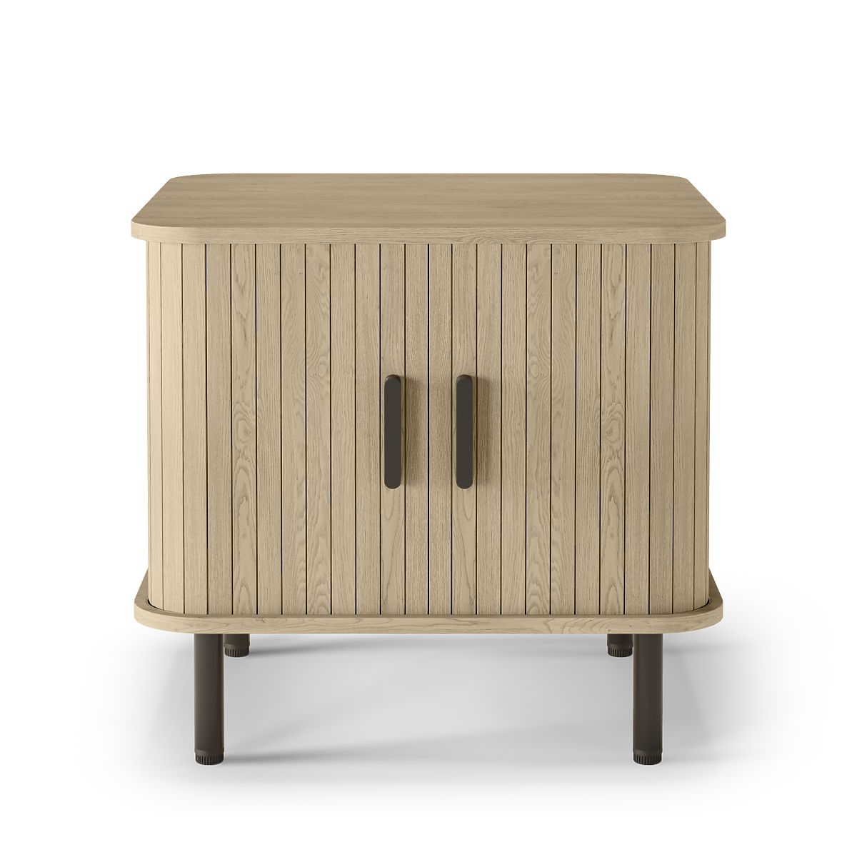Zaoblený nočný stolík Gliss so svetlým dubom a lamelami. .. viac