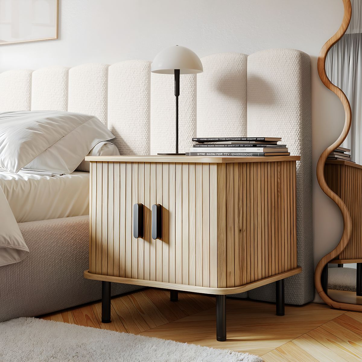 Lukafurniture.sk » Do domu / Spálňa / Nočné stolíky / Nočný stolík Gliss, zaoblený, lamely, svetlý dub