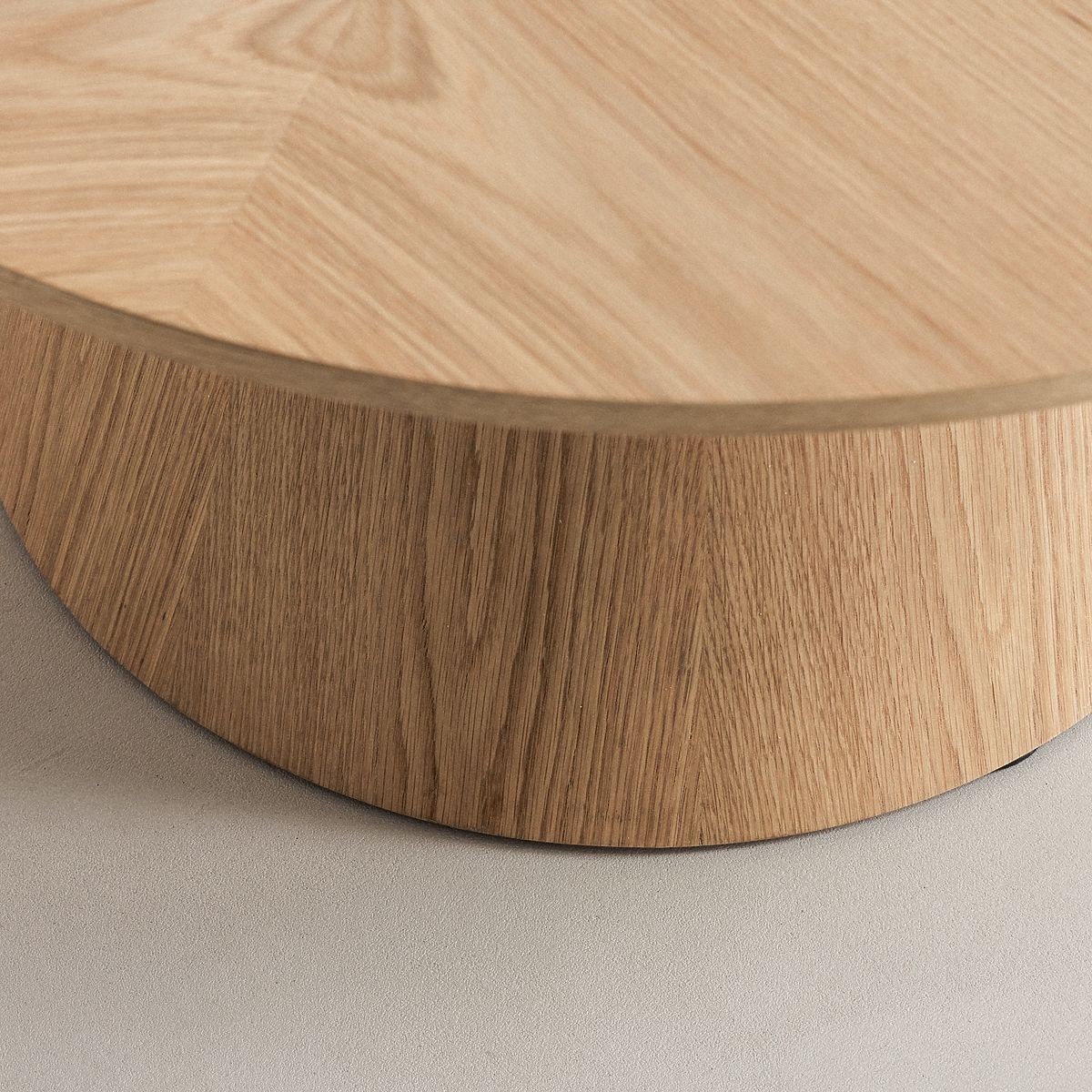 Okrúhly stolík s prírodnou dubovou dyhou a pevnou základňou. .. viac
