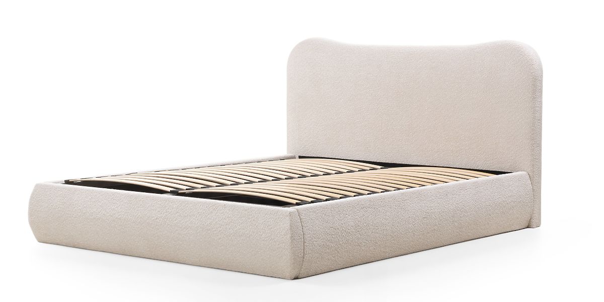 Lukafurniture.sk » Do domu / Spálňa / Manželské postele / Postele 140x200 / Čalúnená posteľ Derry 140x200 cm, s roštom a úložným priestorom, zaoblená, béžová