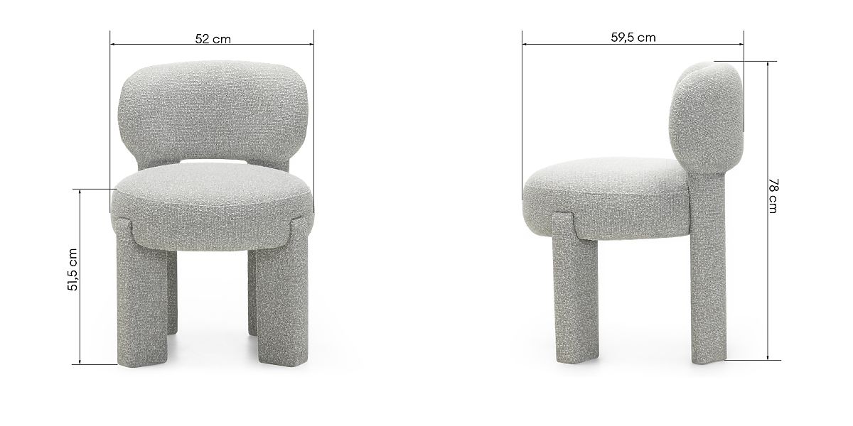 Lukafurniture.sk » Do domu / Jedáleň a kuchyň / Jedálenský stoličky / Čalúnená stolička Falone sivá, boucle, oblé tvary