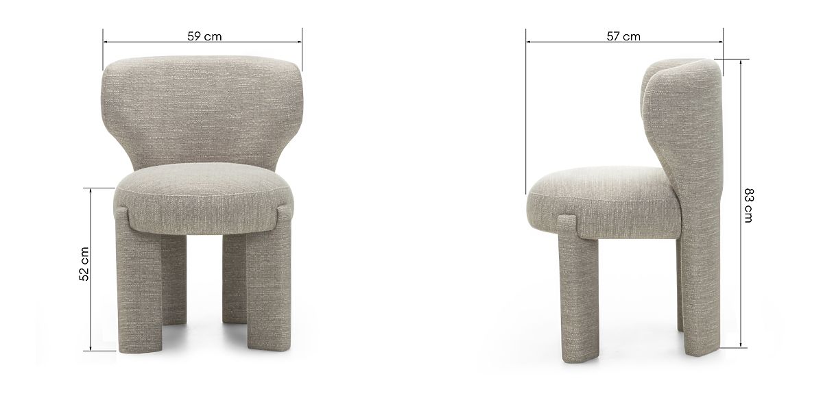 Moderná stolička Elaine s béžovým poťahom a oblými tvarmi. .. viac