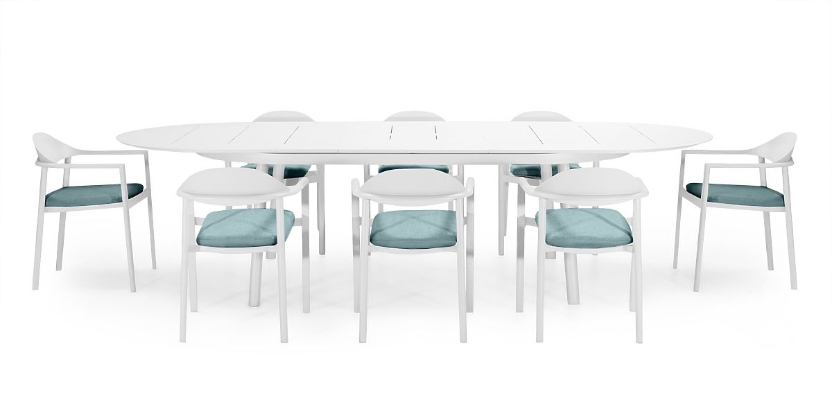 Lukafurniture.sk » Záhradné nábytok / Záhradný set Marinelli, rozkladací stôl 230-300 cm + 8 stoličiek, hliník, biely