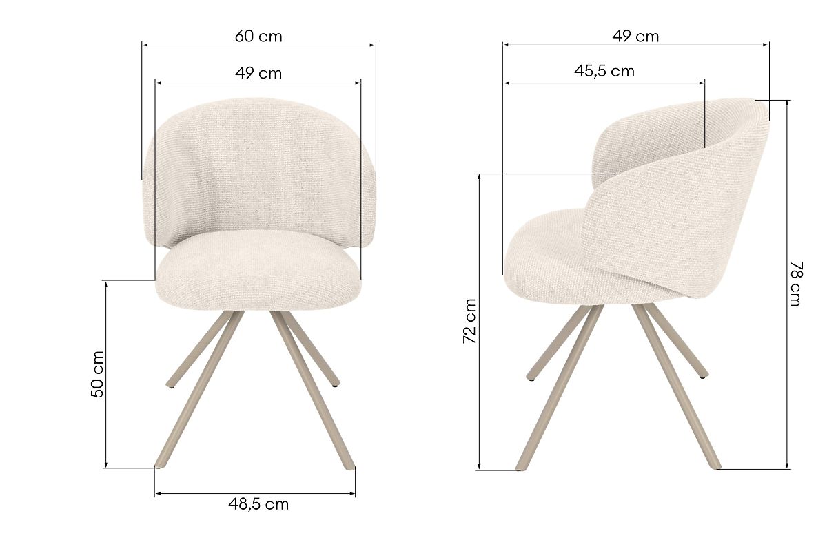Unikátny tvar podrúčok a plynulá forma dodávajú stoličke ľahkosť a eleganciu, ktorá priťahuje pohľady. Stabilná, štvorramenná, kovová základňa v béžovej farbe harmonicky dopĺňa celok a zaručuje trvanlivosť a pevnosť.