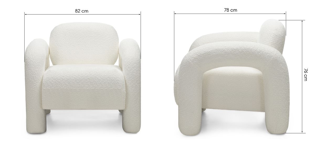Kreslo Vico s krémovým poťahom boucle pre moderný dizajn a pohodlie. .. viac
