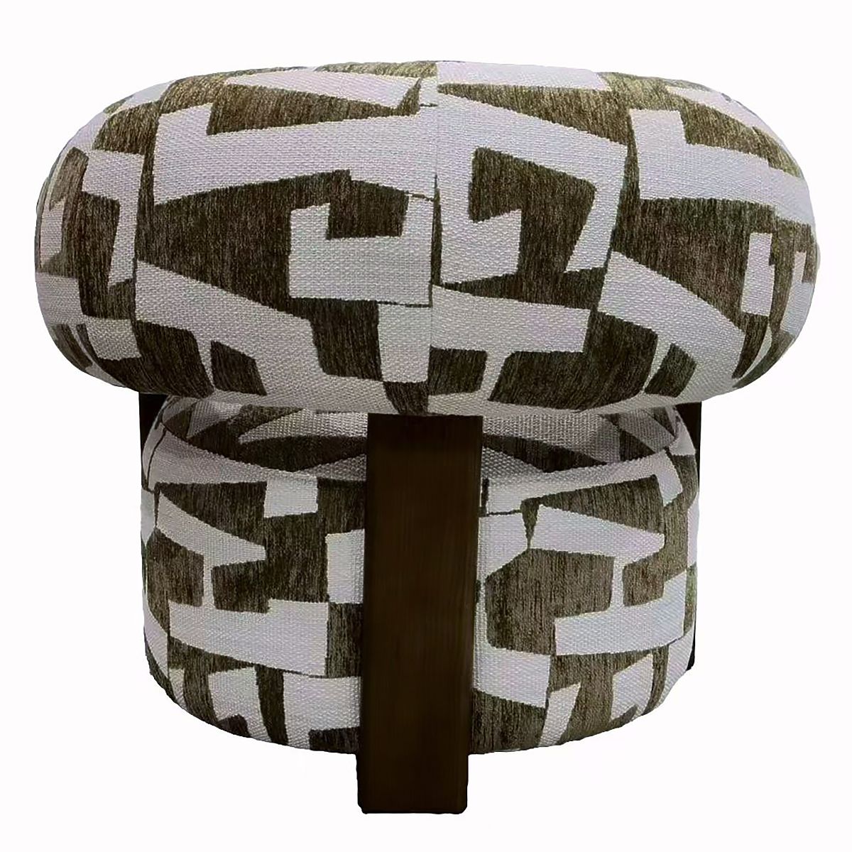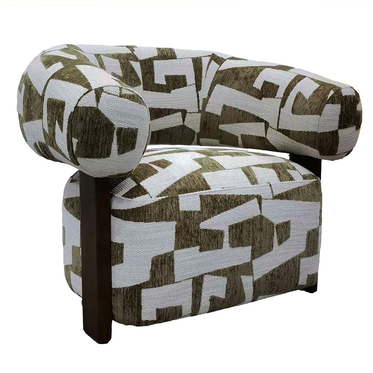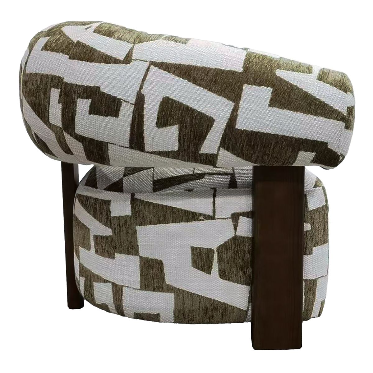 Relaxačné kreslo Maribel s olivovo-krémovým čalúnením a oblými tvarmi. .. viac