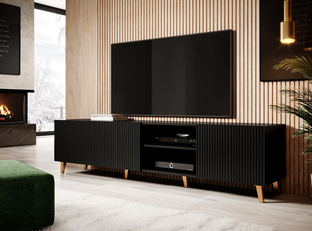 Lukafurniture.sk » Do domu / Obývacia izba / TV stolíky a komody / PAFOS RTV 200 4D ČIERNY MAT/ ČIERNY MAT