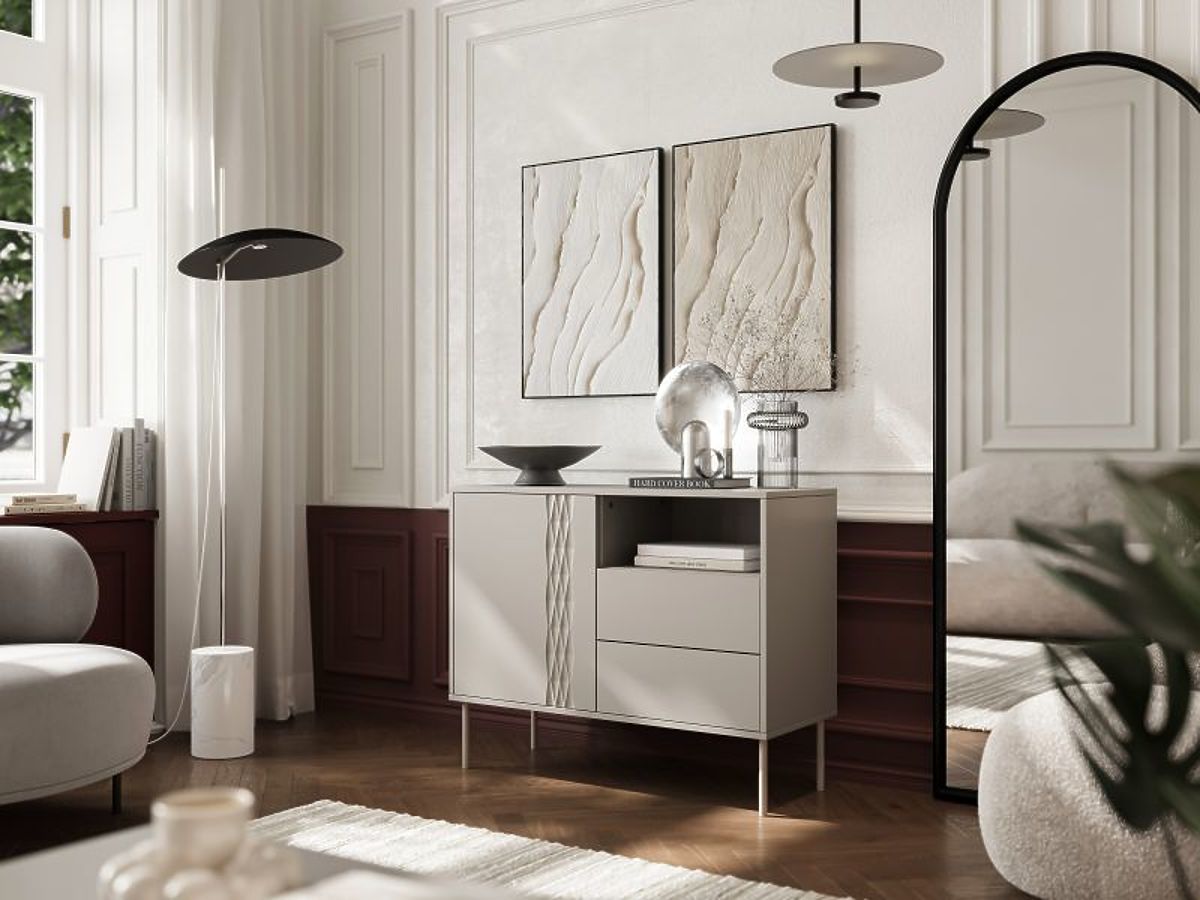 Béžová komoda s rozmermi 75x200x40 cm a systémom PUSH TO OPEN. .. viac