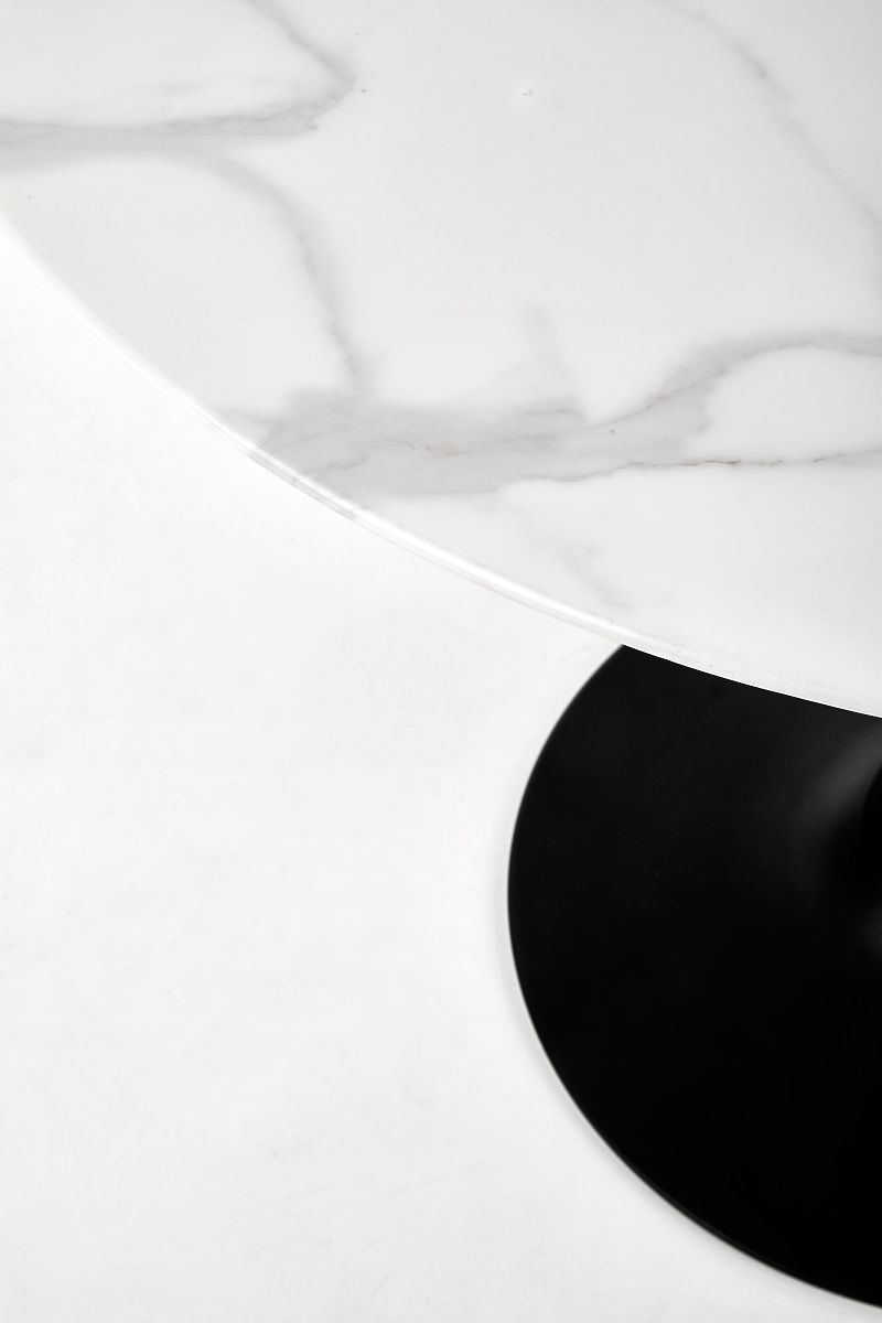Okrúhly stôl s mramorovou doskou a čiernymi nohami. .. viac